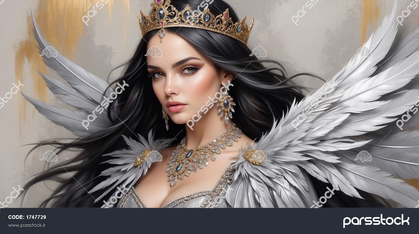 طرح کلوزآپ زن فرشته با موی آبی و تاج بزرگ طلایی نگیندار برای تابلو طرح ملکه فرشته با تاج برگ طلایی و هالهی نور برای پوستر دیواری شیک طرح زن سلطنتی با تاج و گردنبند طلایی برای چاپ روی ماگ و کوسن طرح ملکه فانتزی تاج و جواهر طلایی و گلهای نارنجی برای چاپ عریض طرح پرتره زن فرشته با تاج طلایی و نور درخشان برای تابلو دکوراتیو طرح پرتره فرشته زن مو طلایی برای چاپ کوسن لوکس طرح پرتره زن با موی آبی تیره و تاج طلایی بالدار برای چاپ تابلو دکوراتیو طرح زن مو سیاه با ماسک و تاج طلایی فیروزهای برای چاپ روی پرده طرح زن مو سیاه با ماسک و تاج طلایی فیروزهای برای چاپ روی ماگ طرح پادشاه فانتزی با زره کامل و تاج سلطنتی برای چاپ روی روتختی نمایش همه