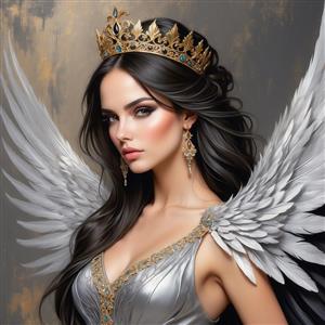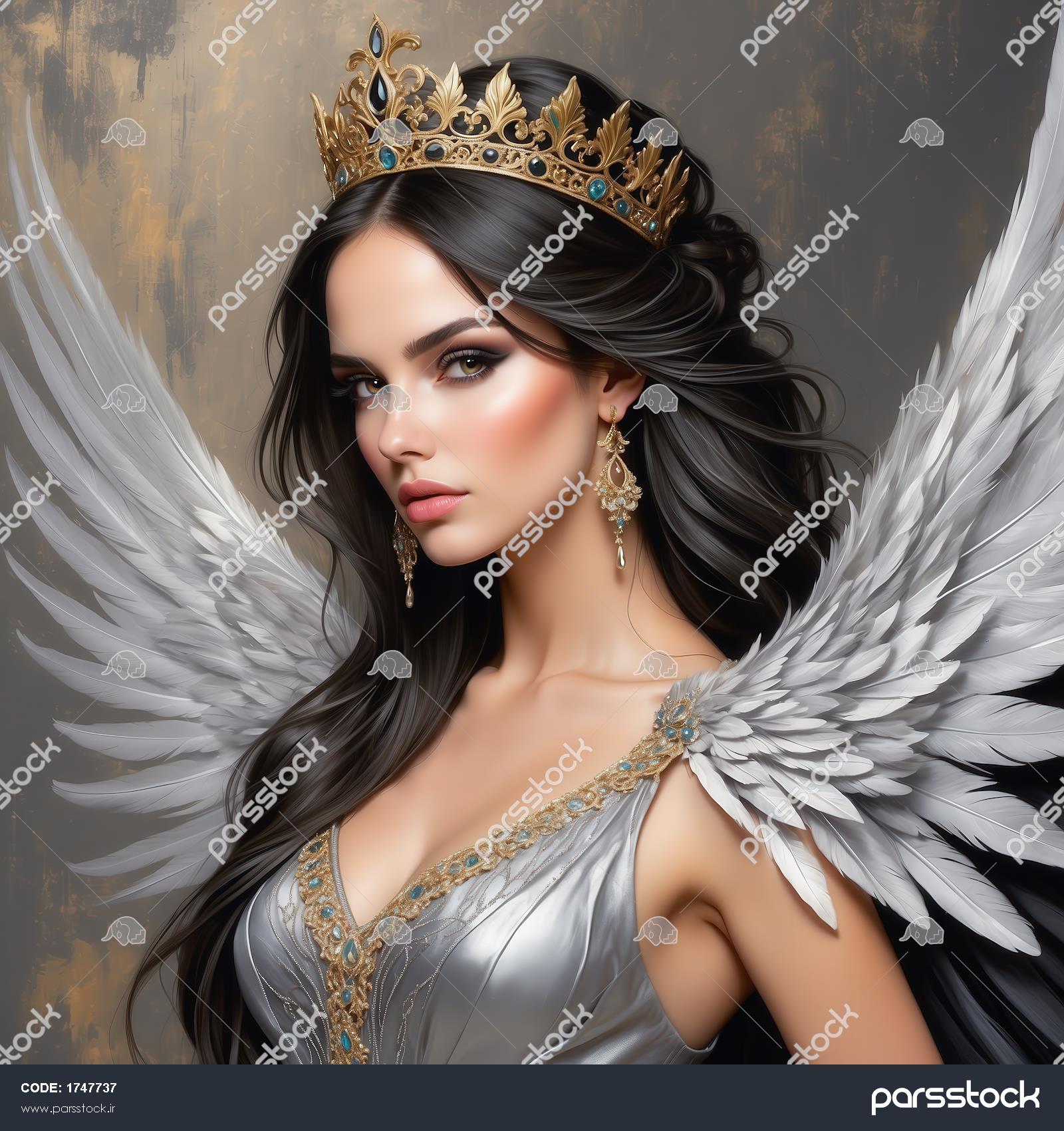 طرح ملکه فرشته با تاج طلایی برای تابلو دیواری پذیرایی