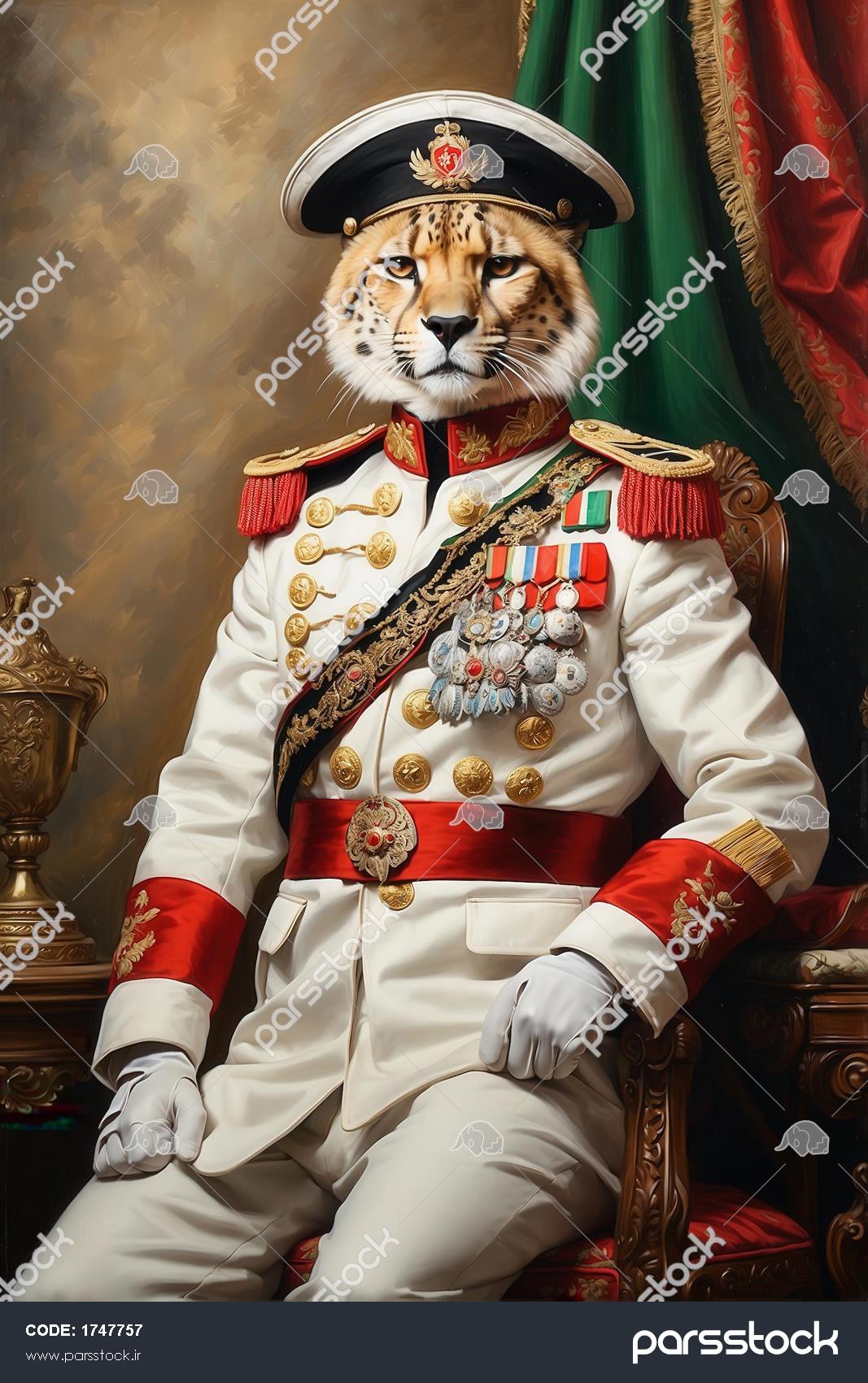 تصویر یوزپلنگ ایرانی در یونیفرم سفید سلطنتی با نشانها برای چاپ روی پرده عکس پرتره ژنرال نظامی ایرانی در لباس سلطنتی سفید با مدال برای تابلو پذیرایی تصویر یوزپلنگ ژنرال ایرانی با لباس نظامی سلطنتی سبز برای تابلو باکیفیت چاپ بوم یوزپلنگ فرمانده نظامی سلطنتی ایران در یونیفرم سبز و قرمز برای تابلو اتاق کار تصویر ژنرال یوزپلنگ ایرانی در یونیفرم نظامی سلطنتی با نشانها و مدال پرتره یوزپلنگ با کلاه و لباس نظامی ارتش ایران سبز برای چاپ روی بوم عکس سرهنگ یوز ایرانی نظامی سلطنتی با پسزمینه پرچم ایران برای تابلو طرح پرتره یوزپلنگ با یونیفرم سفید و شنل قرمز برای دکوراسیون کلاسیک عکس پرتره یوزپلنگ با لباس نظامی سبز و مدالهای بسیار برای تابلو دکوراتیو طرح پرتره یوزپلنگ با یونیفرم نظامی سبز و مدالهای زیبا برای پوستر نمایش همه