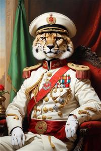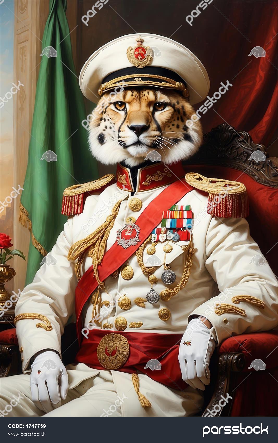 عکس یوزپلنگ با لباس سلطنتی سبز و سفید و پرچم ایران برای دکور منزل عکس پرتره ژنرال نظامی ایرانی در لباس سلطنتی سفید با مدال برای تابلو پذیرایی یوزپلنگ فرمانده نظامی سلطنتی ایران در یونیفرم سبز و قرمز برای تابلو اتاق کار طرح پرتره یوزپلنگ نظامی سلطنتی پشت میز برای پوستر دیواری باکلاس پرتره یوزپلنگ با کلاه و لباس نظامی ارتش ایران سبز برای چاپ روی بوم تصویر پرتره یوزپلنگ با یونیفرم خاکی سلطنتی و نشانهای افتخار طرح پرتره چیتا نظامی سلطنتی در یونیفرم سبز با پسزمینه پرچم ایران پرتره یوزپلنگ ایرانی با یونیفرم ارتشی سبز و کلاه تاریخی برای تابلو کلاسیک طرح پرتره یوزپلنگ با یونیفرم سفید و شنل قرمز برای دکوراسیون کلاسیک طرح پرتره یوزپلنگ با یونیفرم نظامی سبز و مدالهای زیبا برای پوستر نمایش همه