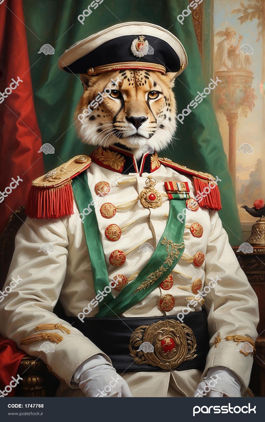 طرح پرتره یوزپلنگ با لباس سلطنتی سبز و سفید برای پوستر دیواری لوکس عکس پرتره یوزپلنگ با یونیفرم سفید سلطنتی پر مدال ارتش ایران پرتره چیتا نظامی سلطنتی در یونیفرم سفید با پسزمینه پرچم ایران پرتره ژنرال یوزپلنگ ایرانی با لباس رسمی نظامی سلطنتی سبز برای چاپ روی روتختی عکس پرتره چیتا با مدالهای زیاد و یونیفرم سلطنتی سبز برای تابلو پذیرایی طرح پرتره یوزپلنگ نظامی سلطنتی پشت میز برای پوستر دیواری باکلاس تصویر پرتره یوزپلنگ با یونیفرم خاکی سلطنتی و نشانهای افتخار طرح پرتره چیتا نظامی سلطنتی در یونیفرم سبز با پسزمینه پرچم ایران تصویر یوزپلنگ ایرانی در یونیفرم سفید سلطنتی با نشانها برای چاپ روی پرده عکس یوزپلنگ با لباس سلطنتی سبز و سفید و پرچم ایران برای دکور منزل مشاهده همه