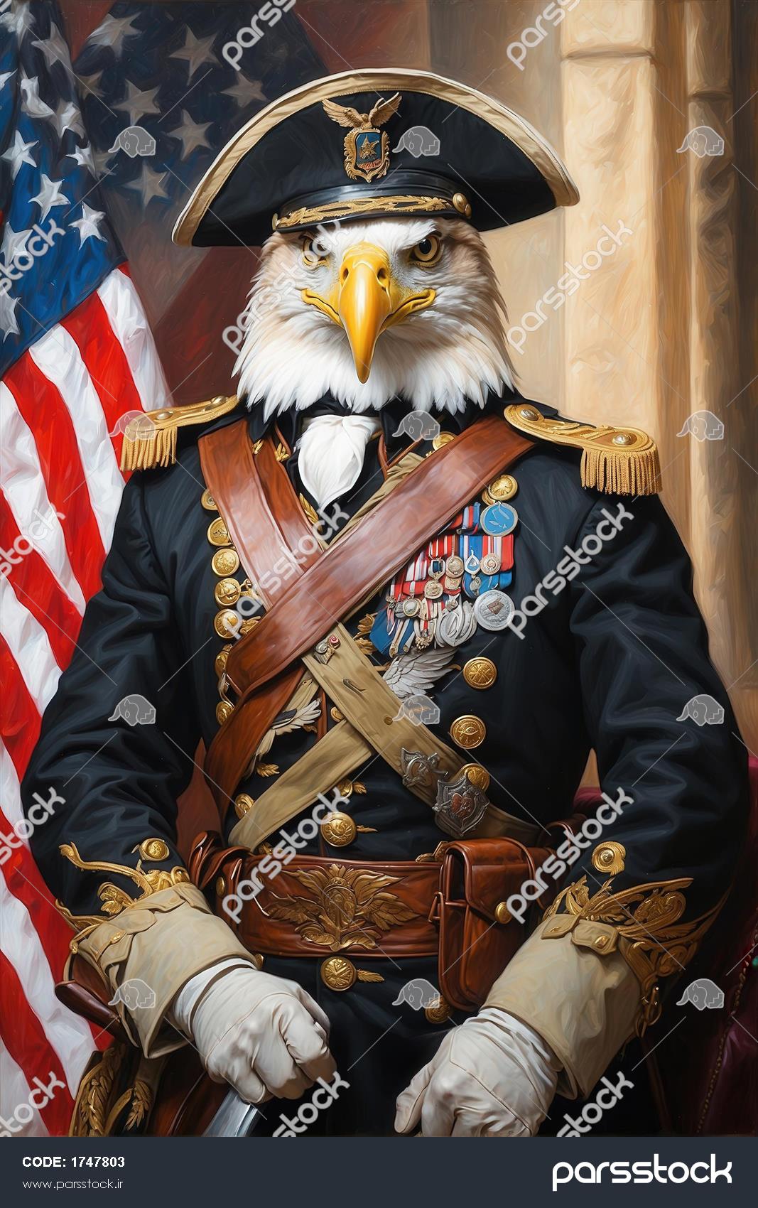 عکس پرتره عقاب سرسفید با یونیفرم مشکی برای چاپ پوستر آمریکایی