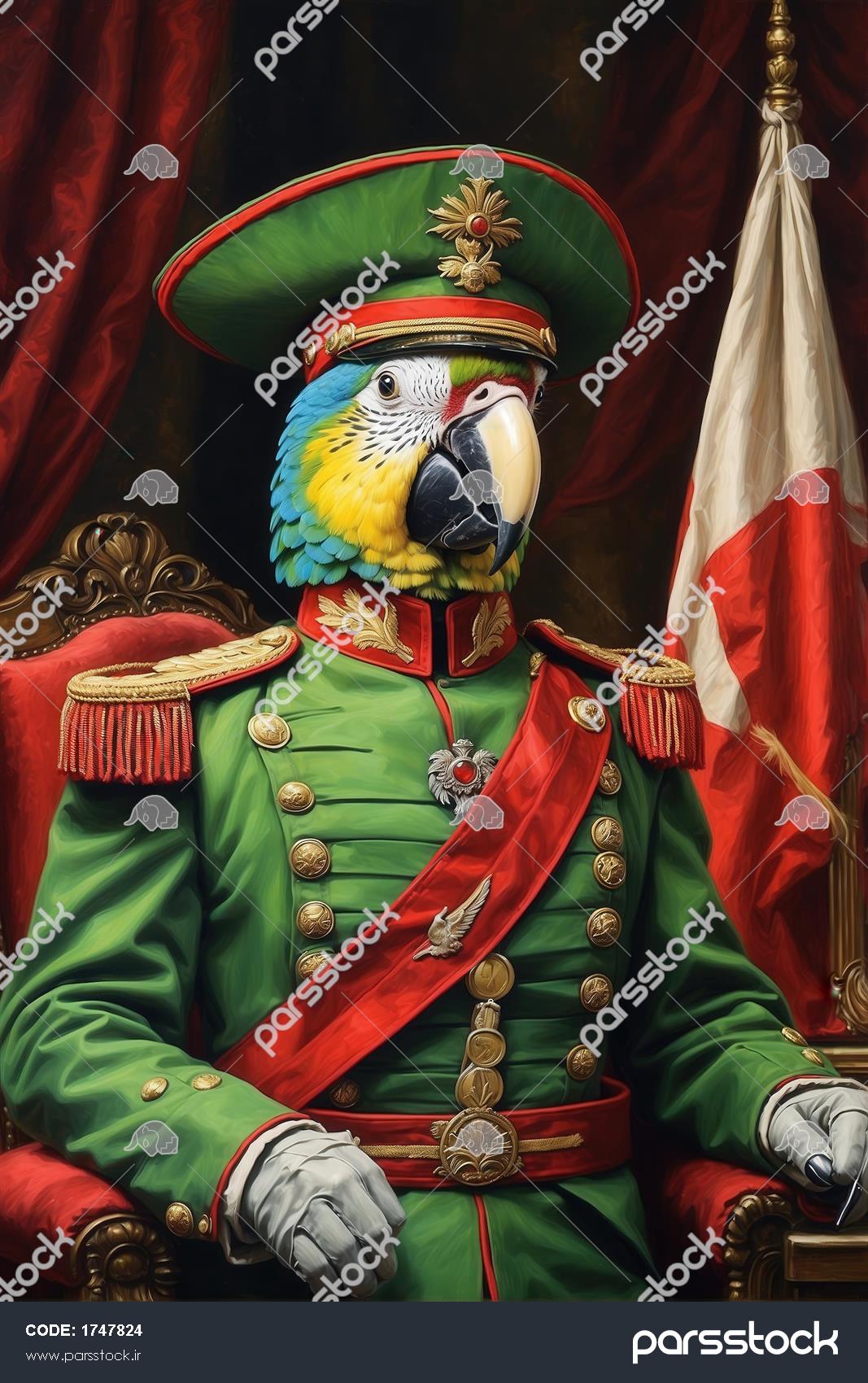 عکس طوطی با یونیفرم سبز کلاسیک و پرچم آمریکا برای تابلو دکوراتیو تصویر طوطی سفید با یونیفرم آبی و پرمدال برای چاپ دکوراسیون منزل طرح پرتره چیتا نظامی سلطنتی در یونیفرم سبز با پسزمینه پرچم ایران طرح پرتره طوطی ماکائو در لباس سلطنتی آبی و سبز برای چاپ پرده طرح طوطی سفید با یونیفرم مشکی و قرمز کلاه لبهدار برای پوستر دیواری طرح پرتره طوطی با لباس فرماندهی و کلاه ناپلئونی برای تابلو دکوراتیو تصویر طوطی ژنرال با یونیفرم سبز پرمدال و کلاه لبهدار برای چاپ پرده تصویر پرتره پاندا در لباس ژنرالی مشکی با پرچم سرخ برای چاپ پرده تصویر یوزپلنگ با یونیفرم سفید سلطنتی سبز و پرچم ایران برای چاپ عریض عکس ببر با یونیفرم نظامی کلاسیک و پرچم آبی و قرمز برای تابلو دکوراتیو نمایش همه