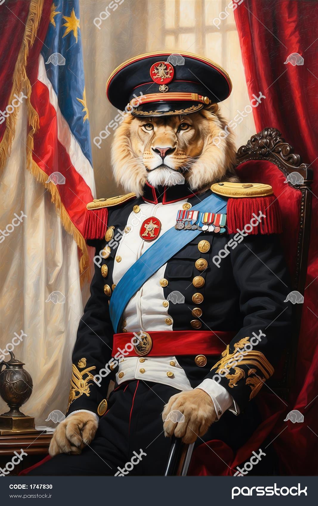 طرح شیر با لباس تشریفاتی سفید و مشکی پرتره رسمی برای چاپ پرده طرح پرتره پادشاه با لباس قرمز رسمی و روبان آبی برای چاپ روتختی تصویر شیر با لباس رسمی آبی سلطنتی در منظره دکوراتیو باکیفیت تصویر شیر با لباس رسمی افسری مشکی و سفید برای تابلو کلاسیک طرح پرتره طوطی با لباس فرماندهی و کلاه ناپلئونی برای تابلو دکوراتیو تصویر پرتره طوطی آبی و زرد با لباس رسمی تشریفاتی برای چاپ پرده طرح پرتره طوطی ماکائو در لباس سلطنتی آبی و سبز برای چاپ پرده طرح پرتره عقاب سرسفید نظامی در لباس مشکی برای چاپ روی پرده طرح پرتره عقاب سرسفید با لباس مشکی و کلاه ژنرالی برای چاپ تابلو طرح پرتره عقاب ژنرال با کلاه و لباس مشکی برای چاپ روی پرده مشاهده همه
