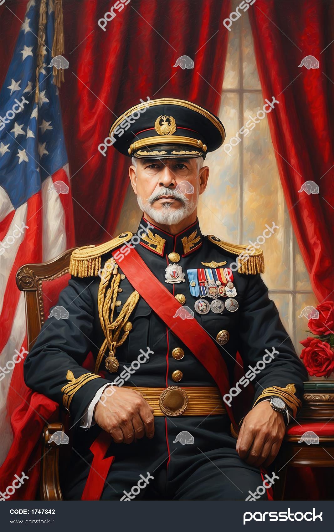 عکس پرتره طوطی با یونیفرم سبز و پرچم آبی برای تابلو دکوراتیو تصویر پرتره عقاب ژنرال با یونیفرم آبی و پرچم آمریکا برای پوستر طرح طوطی با یونیفرم سبز سلطنتی و کلاه ناپلئونی پرچم آمریکا عکس پاندا ژنرال با پرچم آمریکا برای پوستر دیواری اتاق کودک پرتره کلاسیک ژنرال نظامی با یونیفرم قرمز و شال آبی برای تابلو دکوراتیو پرتره مرد ژنرال کلاسیک با لباس مشکی و مدال برای دکوراسیون با کیفیت تصویر ببر ژنرال با یونیفرم مشکی پرمدال و پرچم آبی برای پوستر سلطنتی عکس شیر با لباس افسری آبی و قرمز کلاسیک برای تابلو دکوراتیو لاکچری تصویر پرتره پاندا در لباس ژنرالی مشکی با پرچم سرخ برای چاپ پرده تصویر عقاب سرسفید نظامی با پرچم آمریکا برای پوستر دیواری باکیفیت نمایش همه