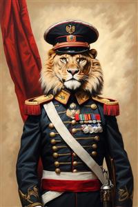 طرح شیر نظامی فانتزی با کلاه رسمی و شال سفید برای تابلو دیواری طرح شیر ژنرال با کلاه و یونیفرم سرمهای و پرده قرمز برای چاپ پرده طرح شیر نظامی فانتزی با کلاه قرمز و یونیفرم سرمهای برای چاپ کوسن طرح شیر سلطنتی فانتزی با یونیفرم سبزتیره و مدالهای کامل برای تابلو طرح شیر فانتزی با یونیفرم مشکی و روبان آبی در میان گلها برای تابلو عکس شیر با لباس ژنرال نظامی سلطنتی مشکی برای تابلو و پرده تصویر شیر ژنرال با یونیفرم مشکی پرمدال و کلاه نظامی برای پوستر تصویر شیر فانتزی با یونیفرم تیره و شال قرمز برای تابلو اتاق نشیمن پرتره شیر سلطنتی با یونیفرم قرمز پرمدال و شال آبی برای تابلو پذیرایی تصویر شیر ژنرال فانتزی با کلاه و یونیفرم مشکی برای دکوراسیون داخلی مشاهده همه