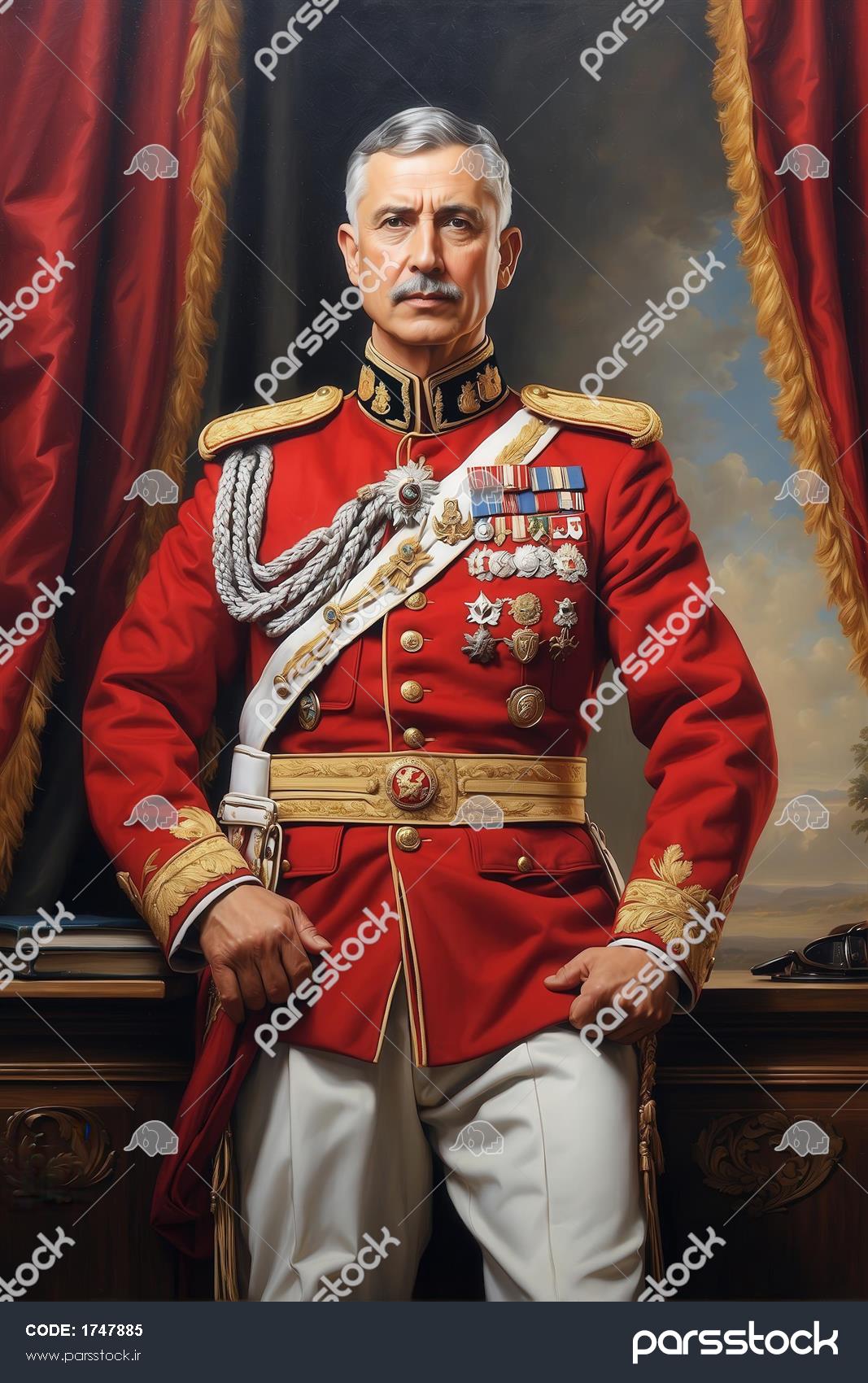 پرتره ژنرال نظامی با یونیفرم طوسی و روبانهای قرمز برای دکوراسیون طرح پرتره پادشاه با لباس قرمز رسمی و روبان آبی برای چاپ روتختی عکس شیر با لباس ژنرال نظامی سلطنتی مشکی برای تابلو و پرده عکس پرتره ژنرال نظامی ایرانی در لباس سلطنتی سفید با مدال برای تابلو پذیرایی تصویر پرتره افسر نظامی با یونیفرم سبز زیتونی و کلاه برای پوستر دیواری تصویر پرتره کلاسیک افسر ارتش با یونیفرم قرمز و کلاه تزئینی برای دکور طرح شیر سلطنتی فانتزی با یونیفرم سبزتیره و مدالهای کامل برای تابلو پرتره شیر سلطنتی با یونیفرم آبی و مدالهای طلایی برای پوستر دیواری عکس پرتره طوطی ماکائو در یونیفرم آبی سلطنتی برای تابلو دکوراتیو تصویر پرتره پلنگ/ببر ژنرال با یونیفرم سبز برای تابلو دکوراتیو نمایش همه