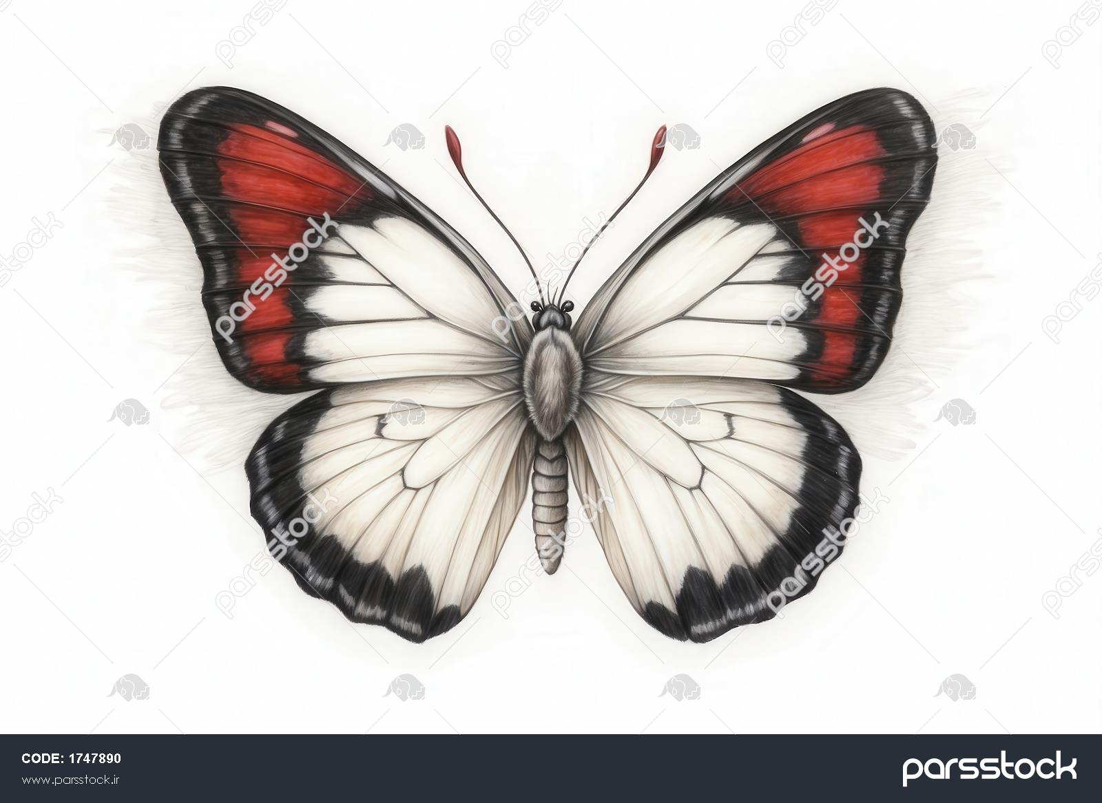 پروانه سفید و قرمز فانتزی باکیفیت برای پوستر دیواری اتاق نوجوان