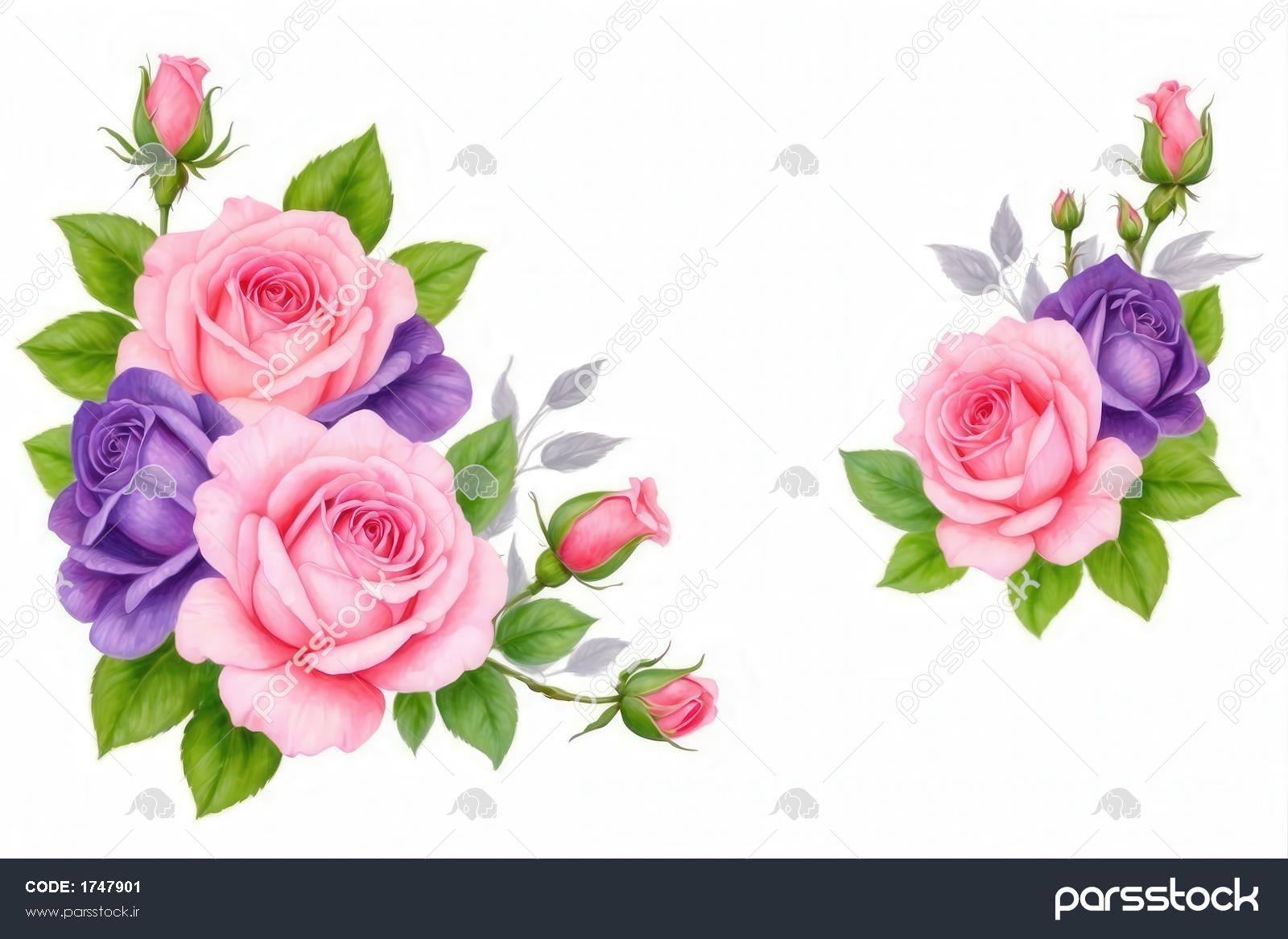 تصویر گل‌های رز صورتی و بنفش تیره برای چاپ پوستر دیواری لوکس