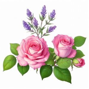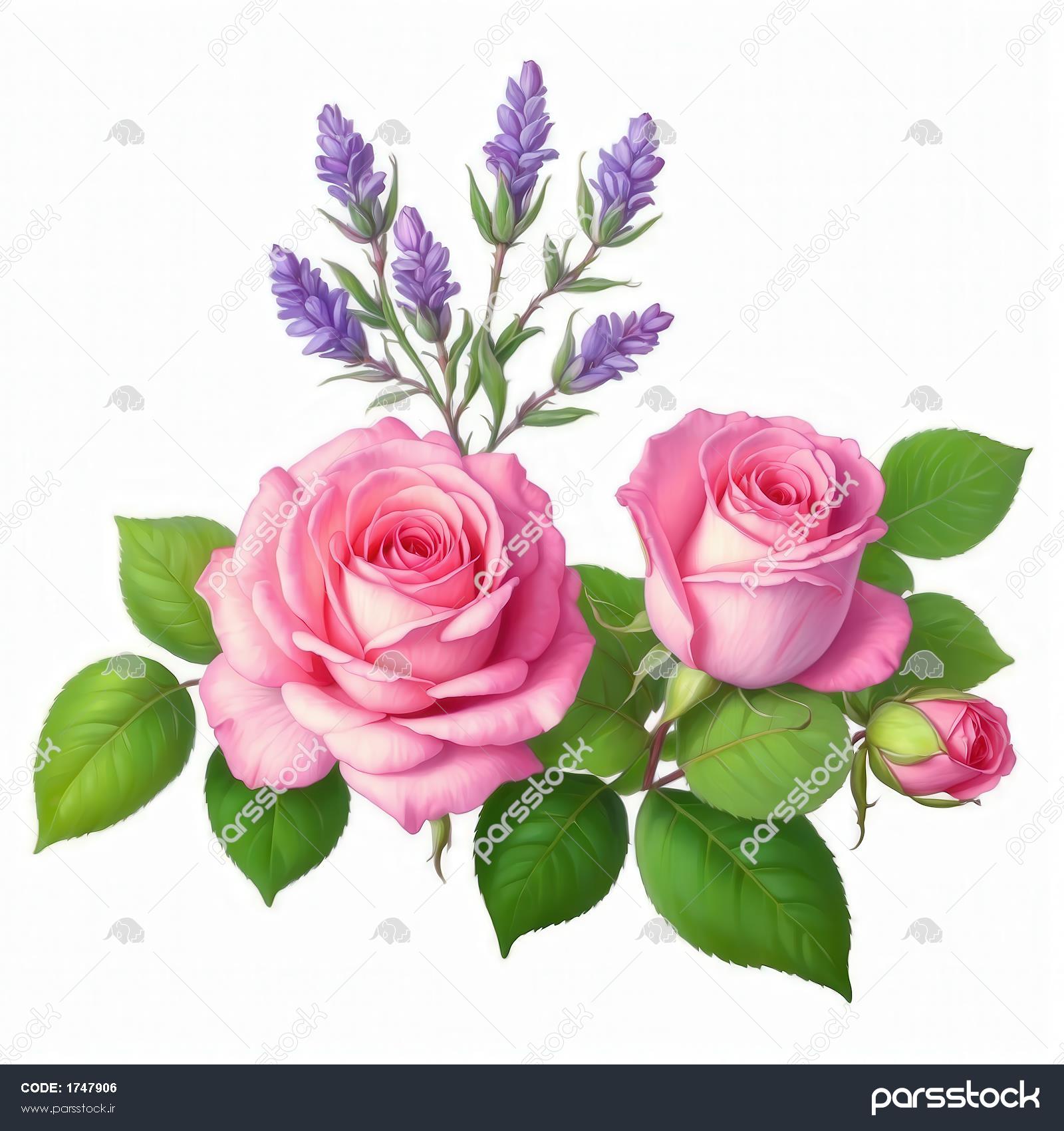 عکس دسته گل رز و اسطوخودوس بنفش آبرنگی برای پوستر دیواری پذیرایی