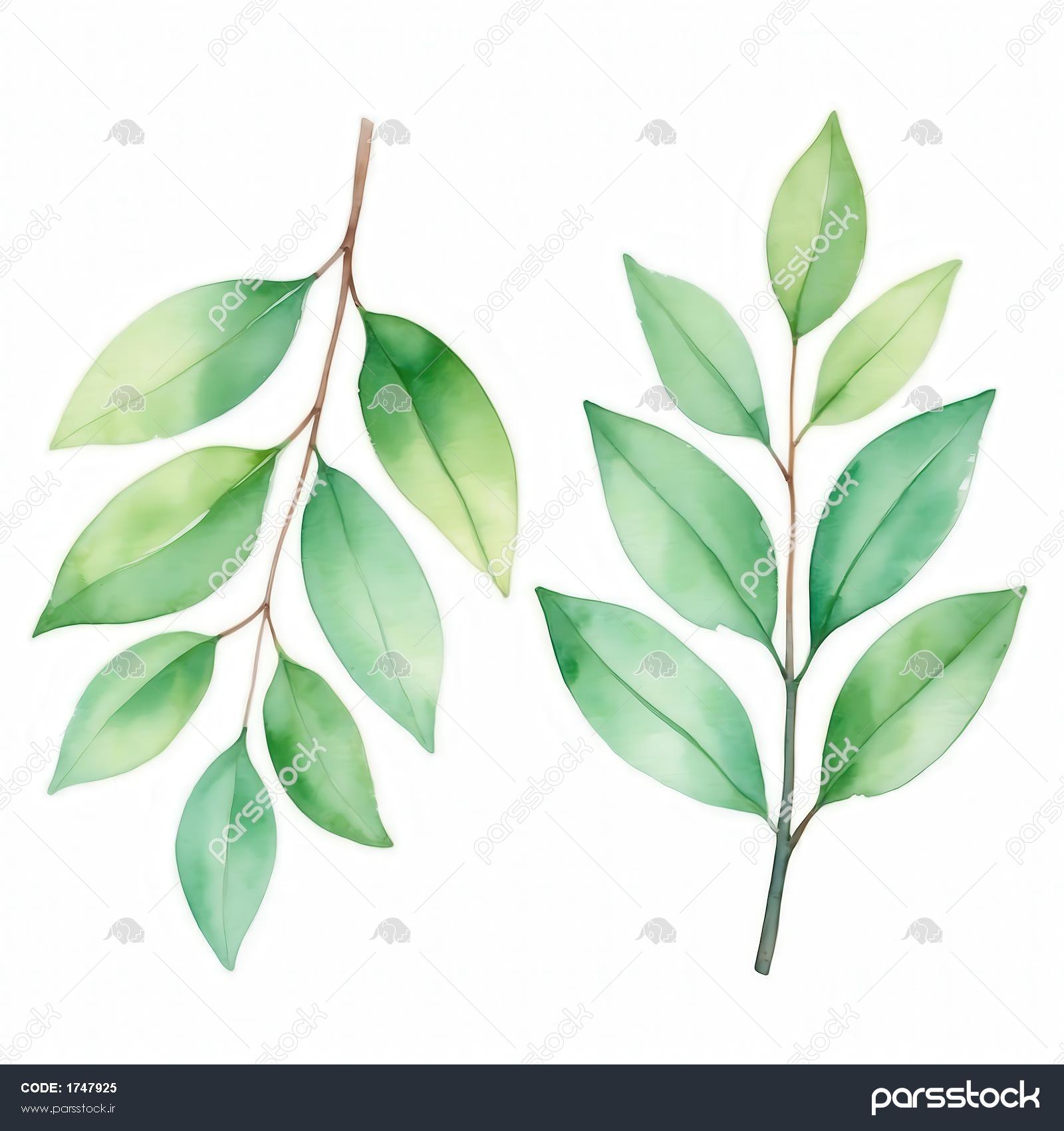 طرح برگ‌های سبز روشن آبرنگی برای پرده و چاپ کوسن دکوراتیو