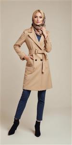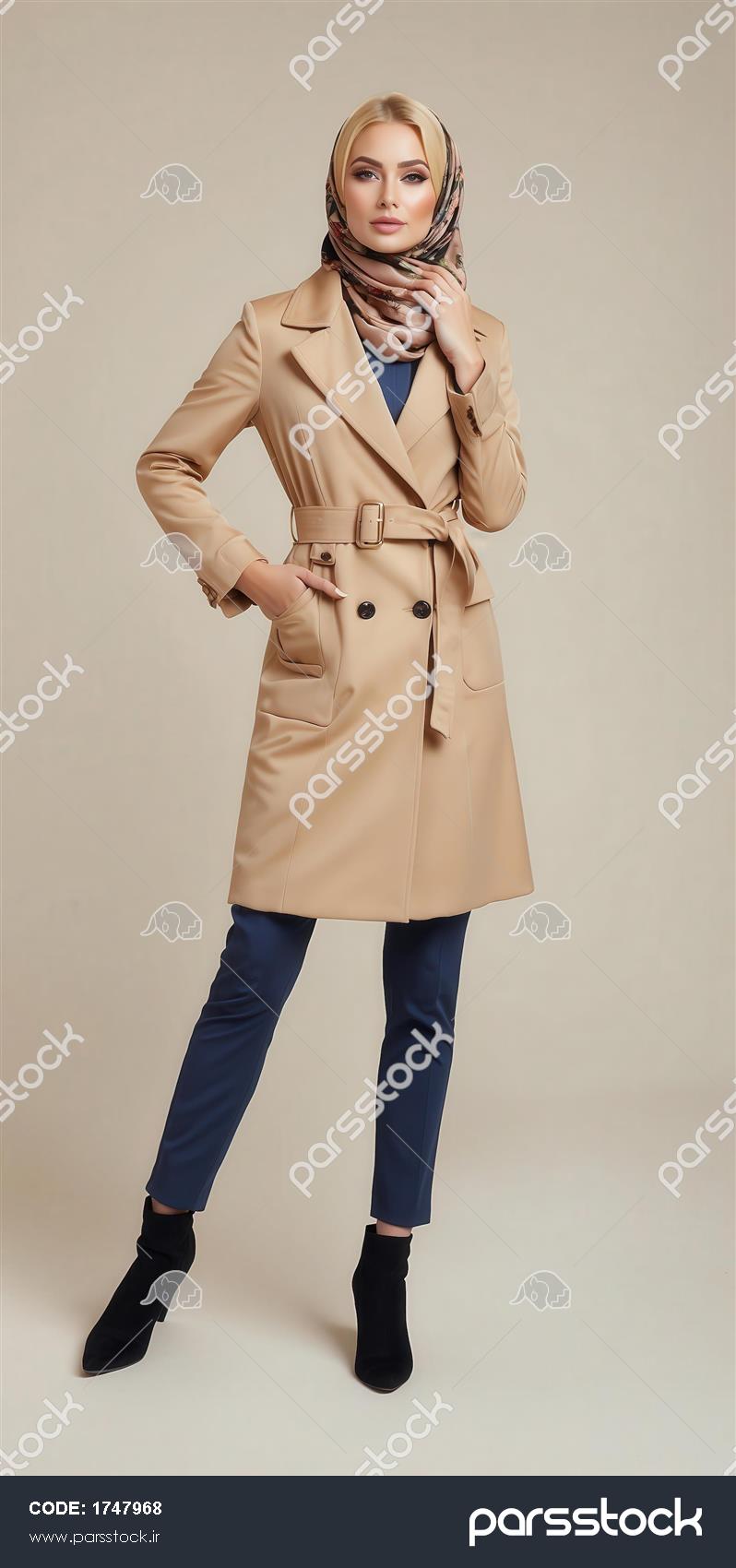 طرح مدل زن با پالتوی شتری و شال با حجاب اسلامی