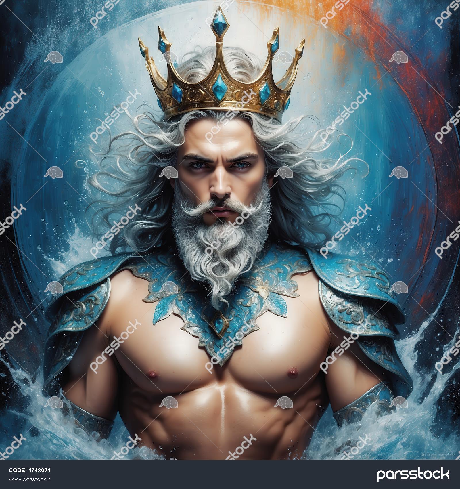 تصویر خدای دریا فانتزی با موی سفید باکیفیت برای پوستر دیواری