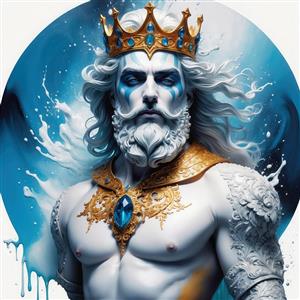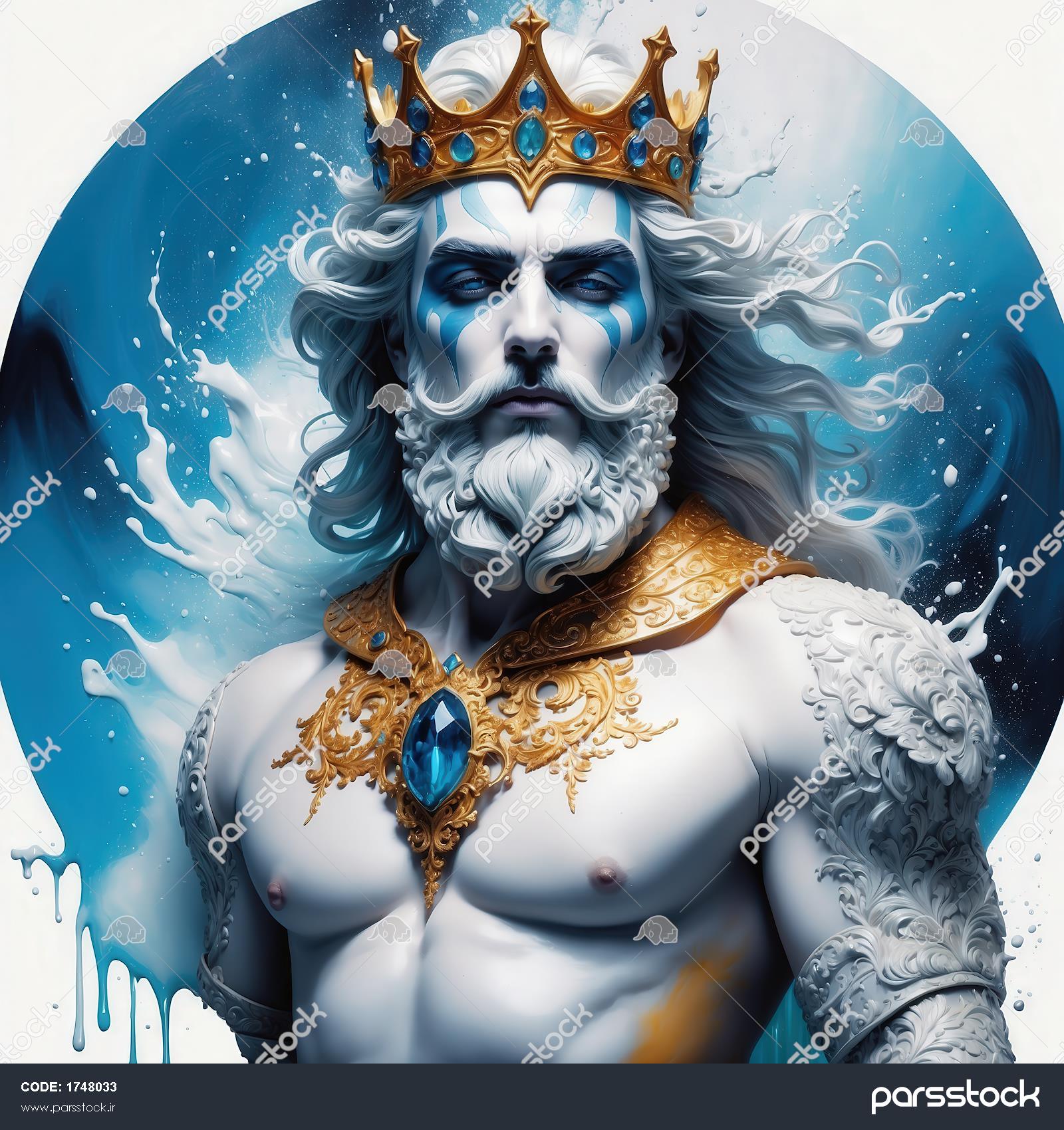 تصویر پادشاه سفیدپوش با ریش بلند و تاج آبی برای چاپ روی روتختی