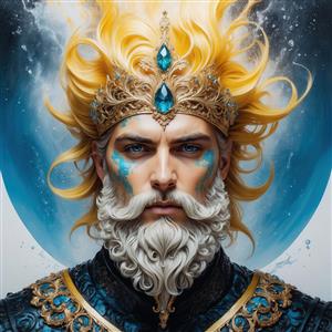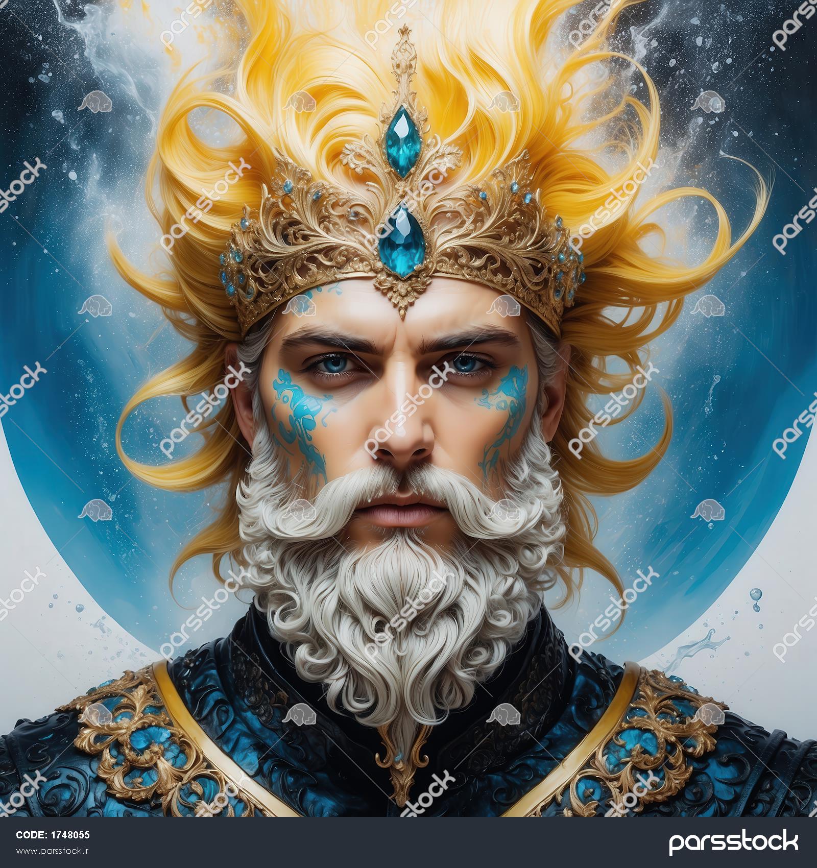 عکس خدای ریش سفید با موهای طلایی و تاج فیروزه‌ای برای دکوراسیون