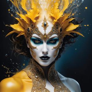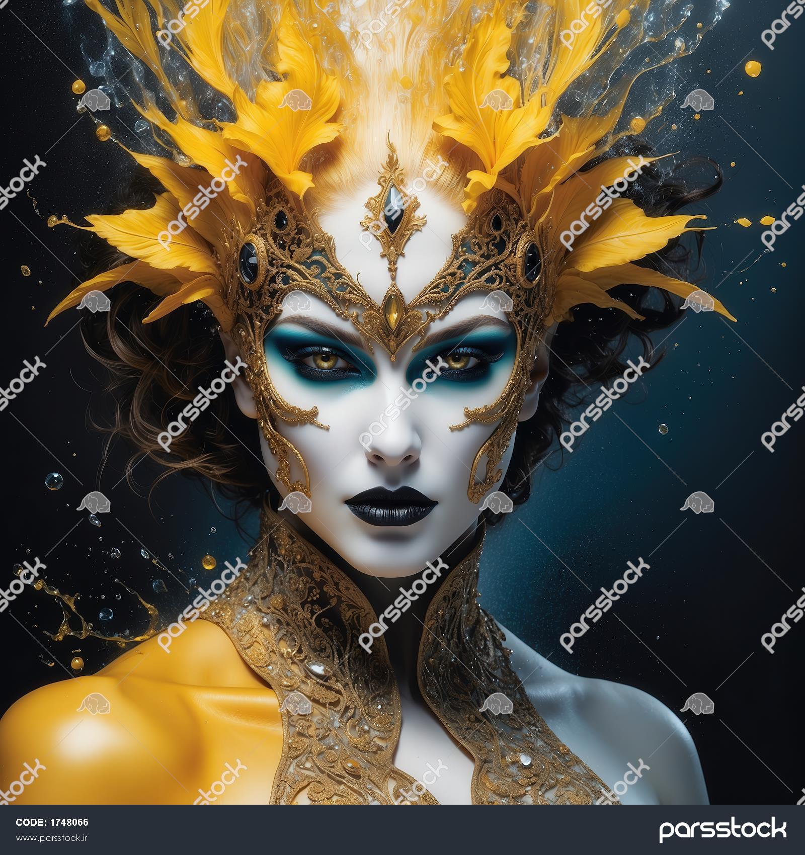 عکس زن جنگجو با ماسک و تاج طلایی برای تابلو هنری مدرن