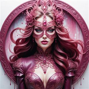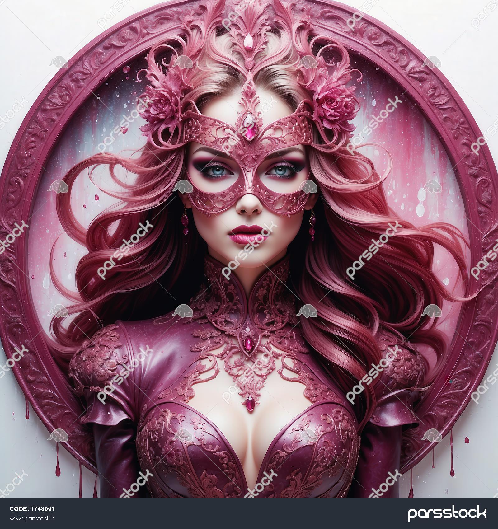 طرح زن با موی صورتی و ماسک سرخابی برای چاپ پرده اتاق پذیرایی