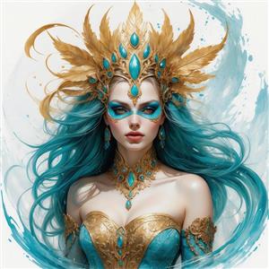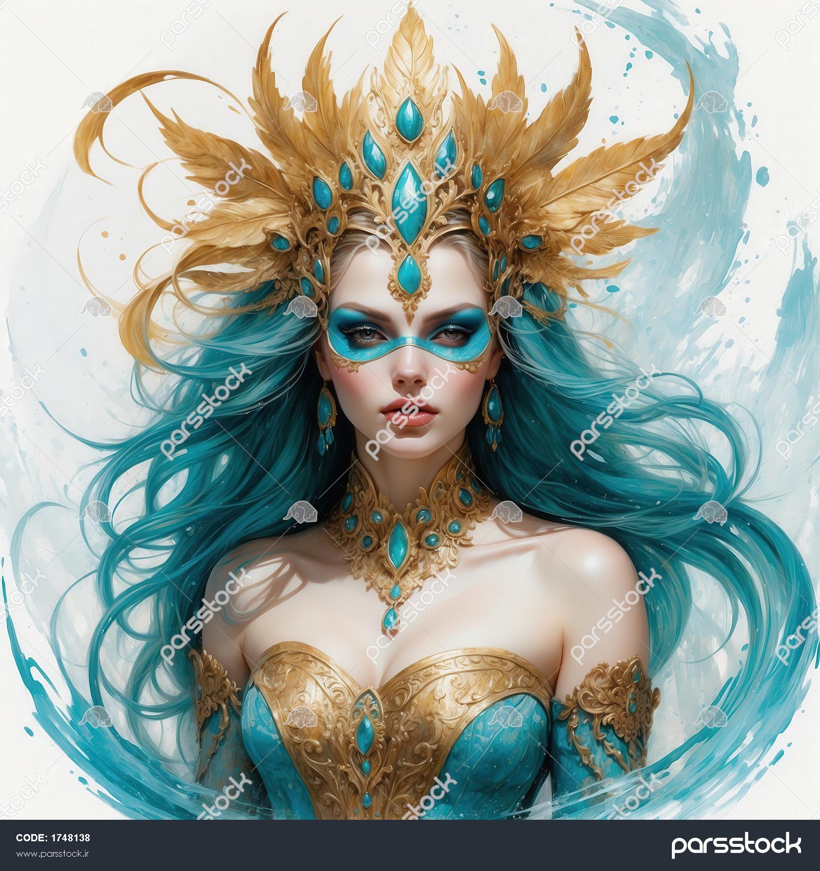 عکس الهه فیروزه‌ای با تاج طلایی پر و گردنبند سلطنتی برای تابلو پذیرایی