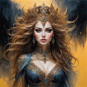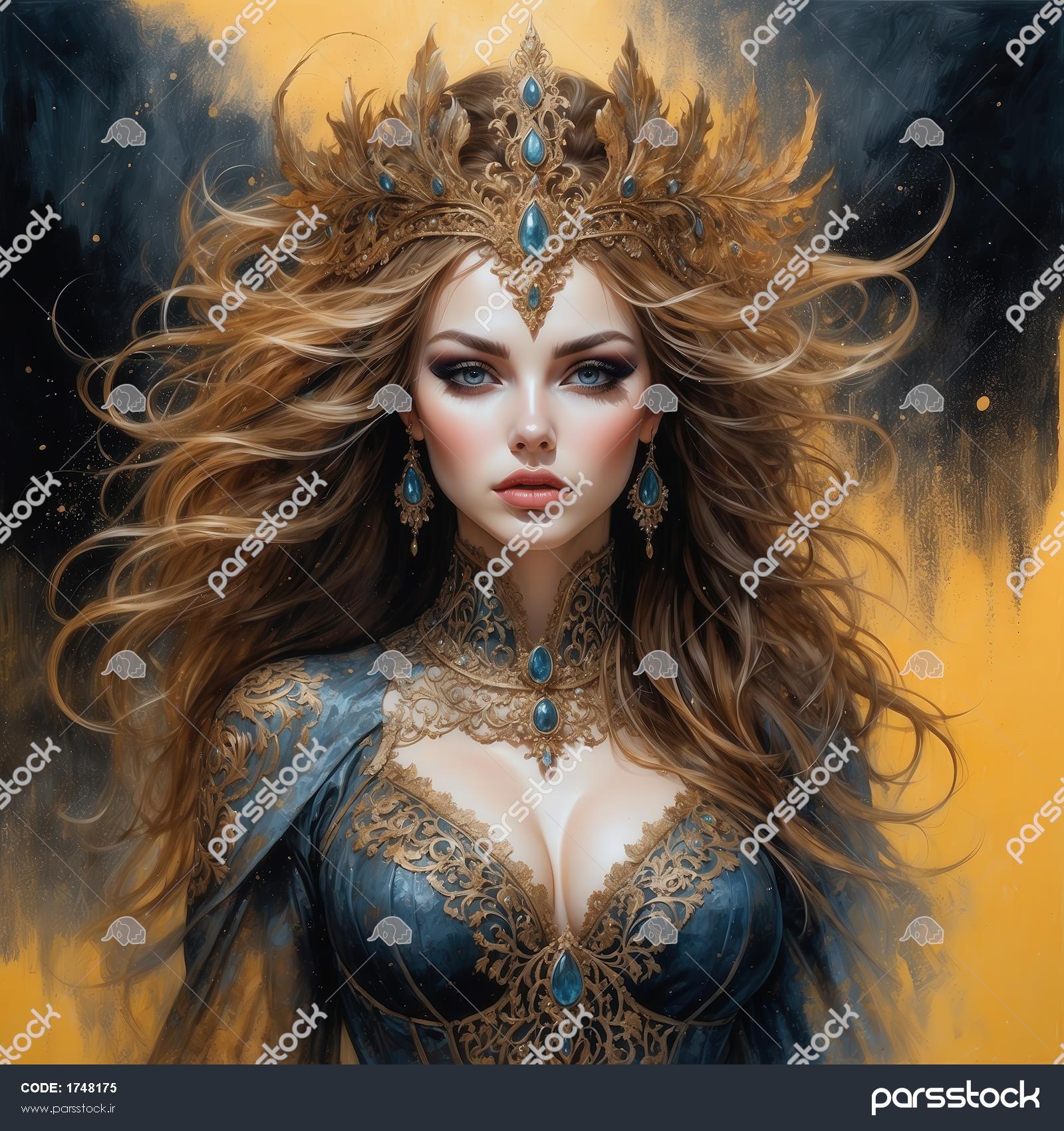 عکس زن سلطنتی با تاج طلایی و موهای روشن برای تابلوی دکوراتیو