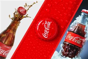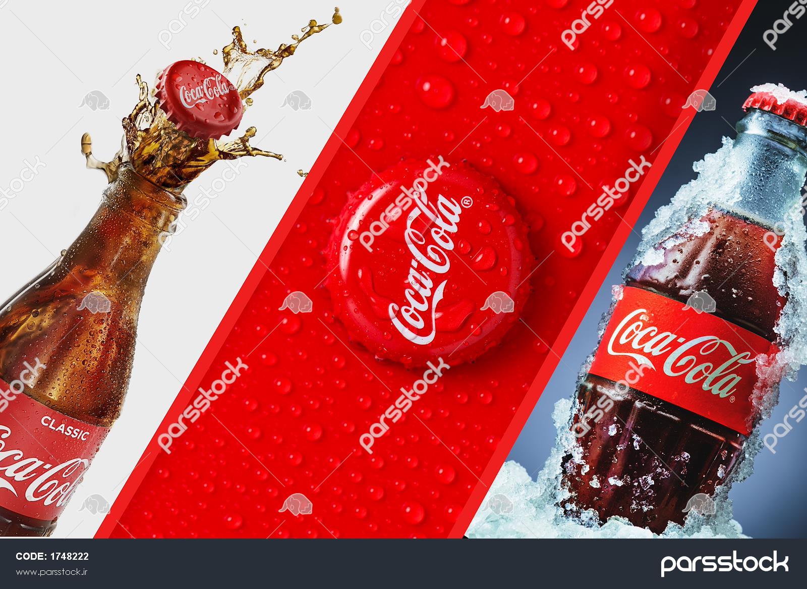 پوستر دیواری سه بعدی کوکاکولا با بطری شیشه‌ای و نوشته کوکاکولا