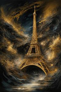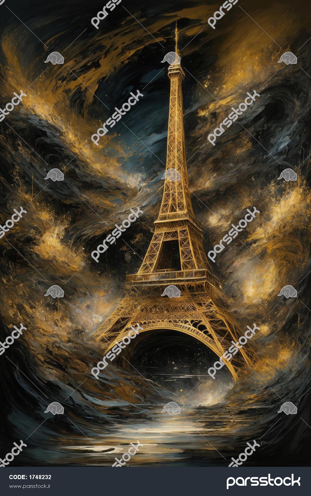 طرح برج ایفل با نورپردازی تیره و جریان‌های طلایی برای روتختی لوکس