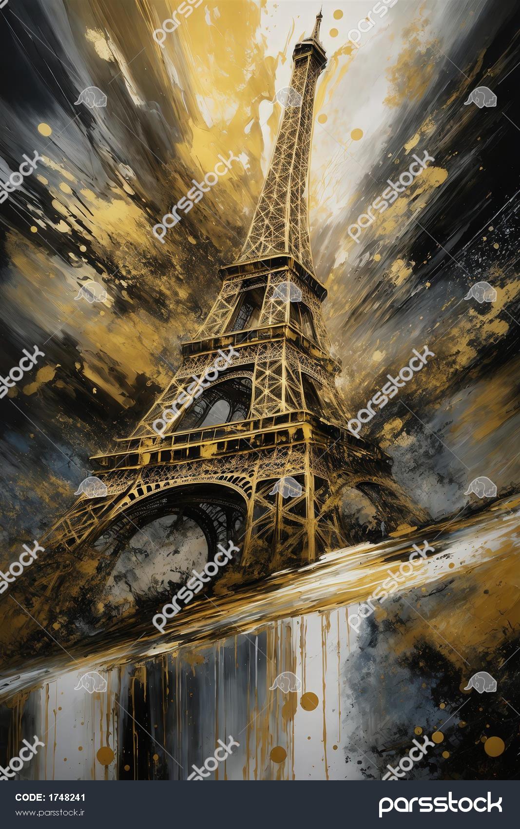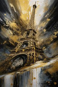 تصویر برج ایفل آبستره با رنگ‌های متالیک طلایی و خاکستری برای تابلو