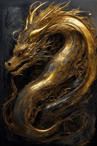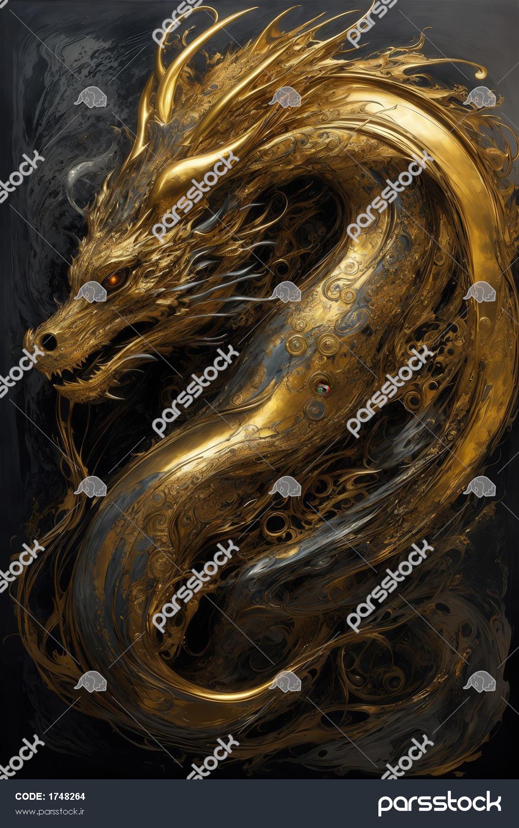 طرح اژدهای مجلل با رنگ طلایی و مشکی برای پوسترهای عمودی باکیفیت