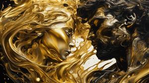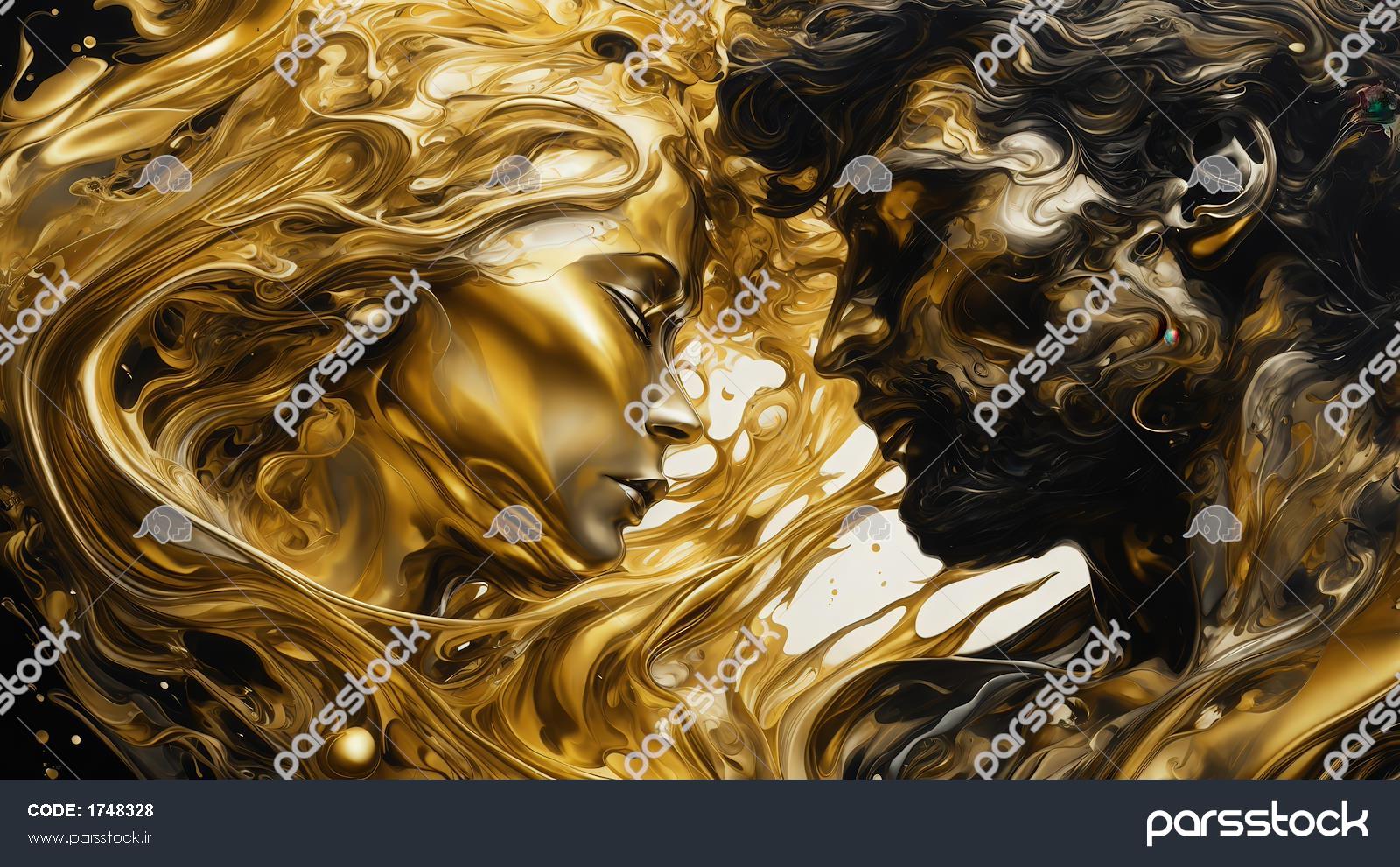 طرح پرتره زوج با ترکیب طلایی و مشکی براق در سبک سیال برای پوستر