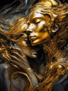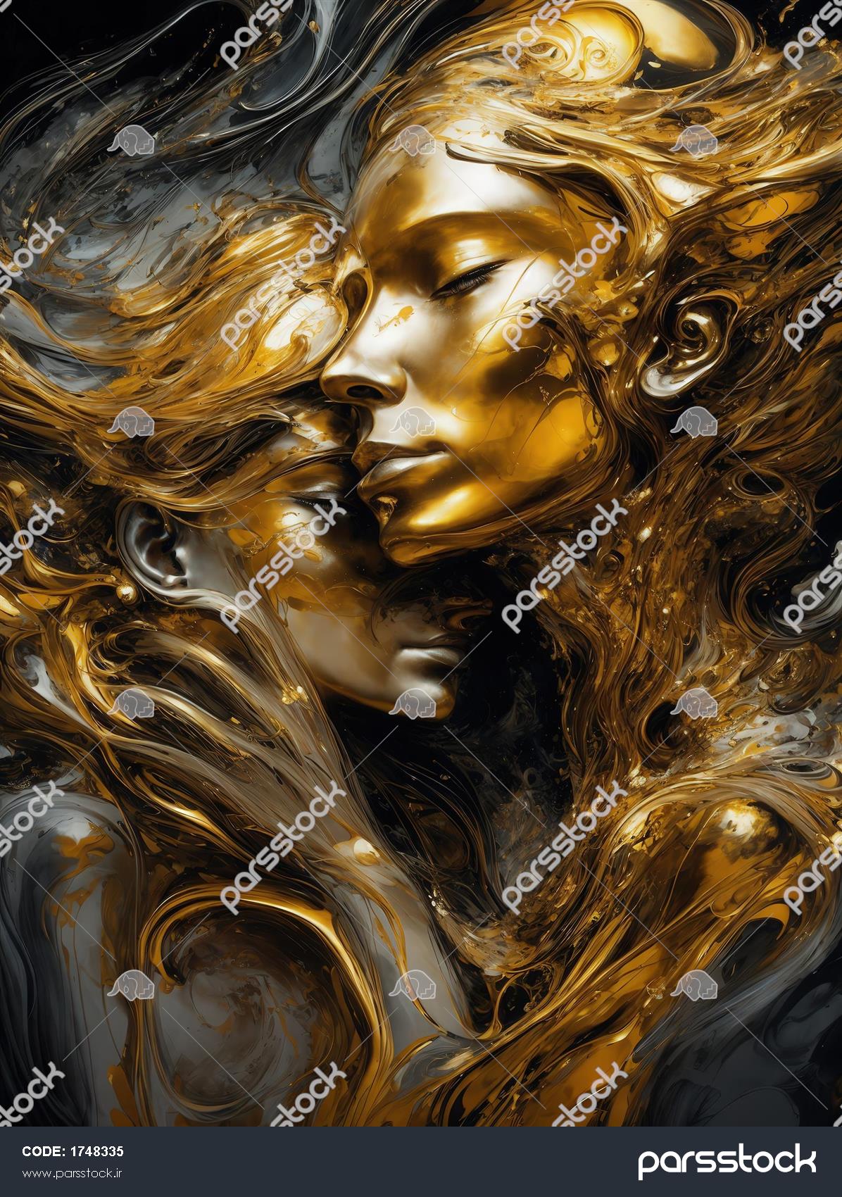 طرح نزدیک چهره زوج طلایی و نقره‌ای با رگه‌های مشکی برای دکور