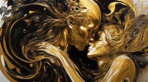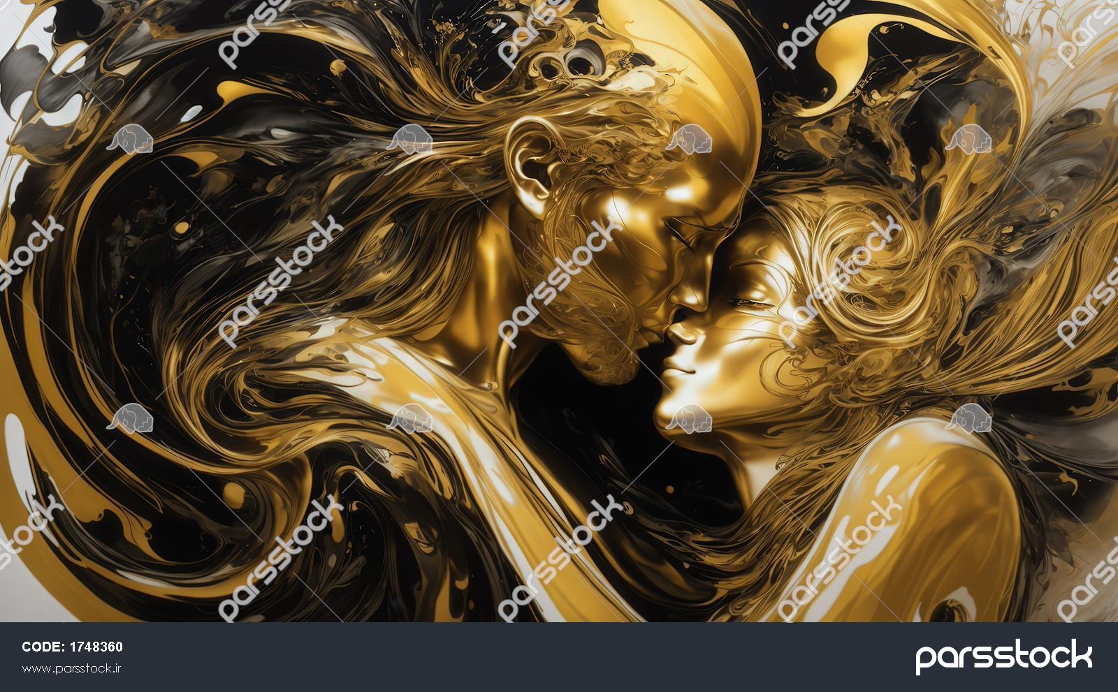 طرح دکوراتیو نزدیک دو چهره طلایی با موهای درهم تنیده رویایی