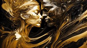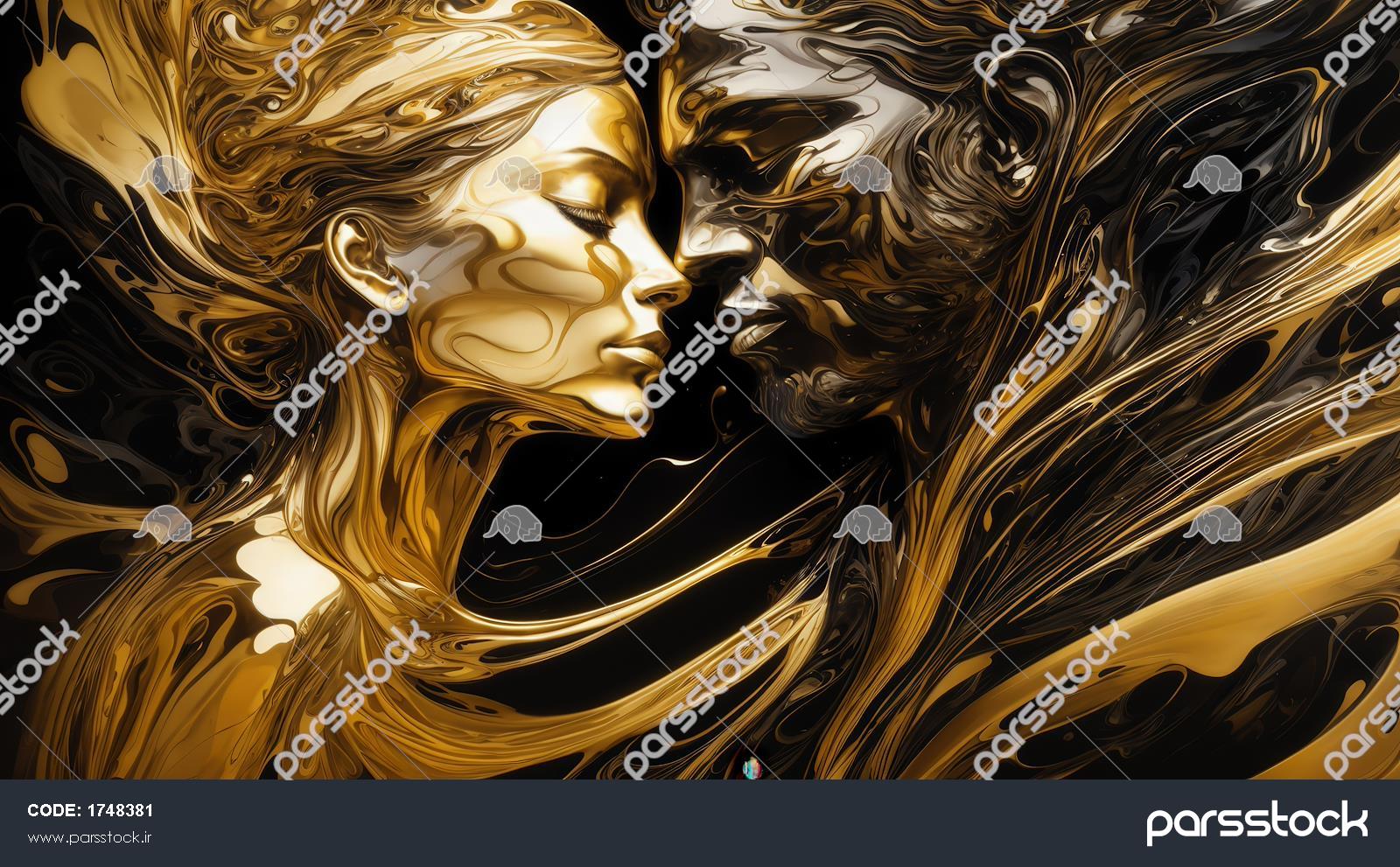 عکس عاشقانه انتزاعی زوج طلایی تیره برای تابلو دیواری اتاق خواب