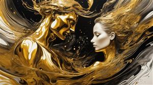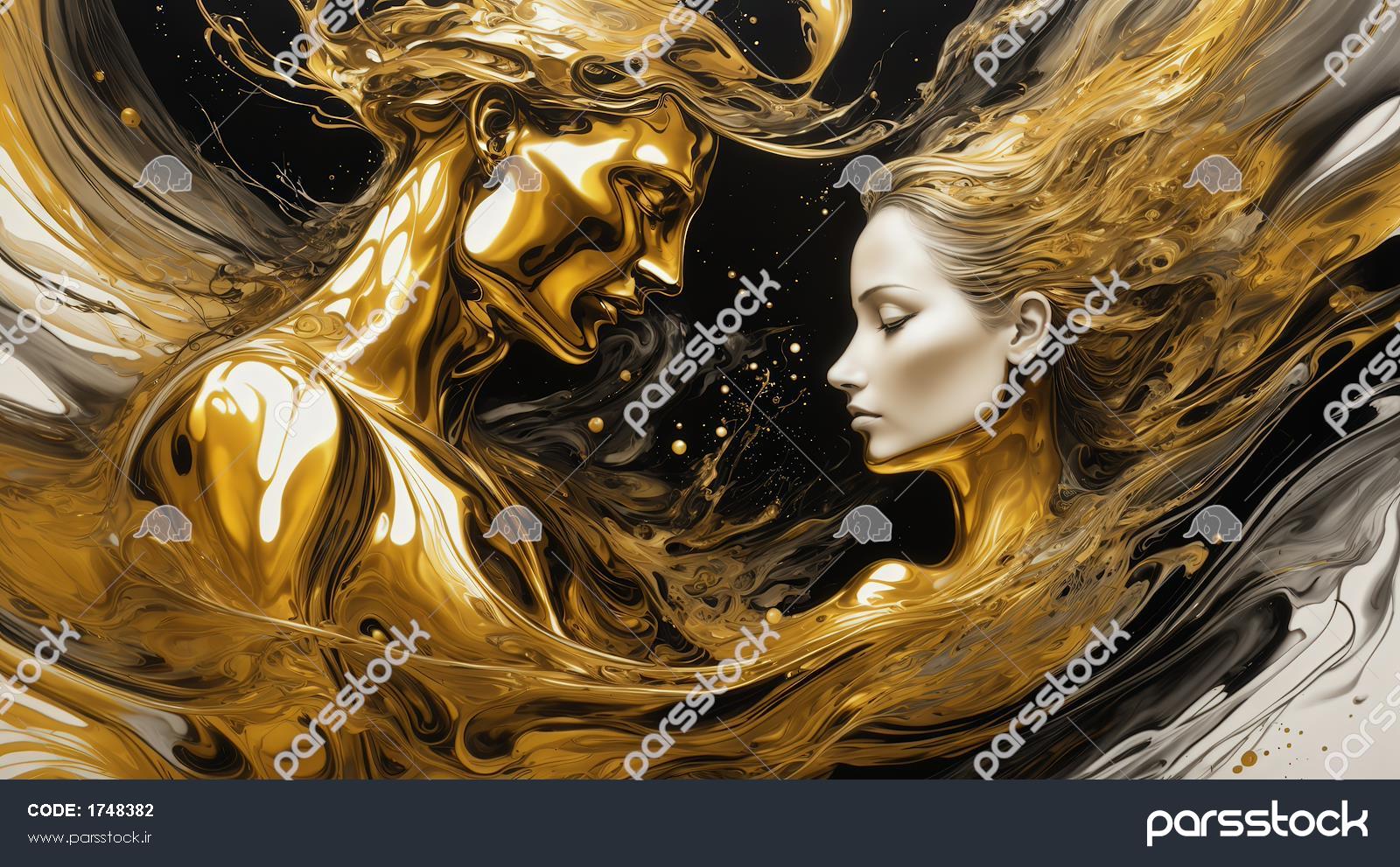 طرح عاشقانه زوج رو به هم با تم طلایی و سیاه برای چاپ روی پرده