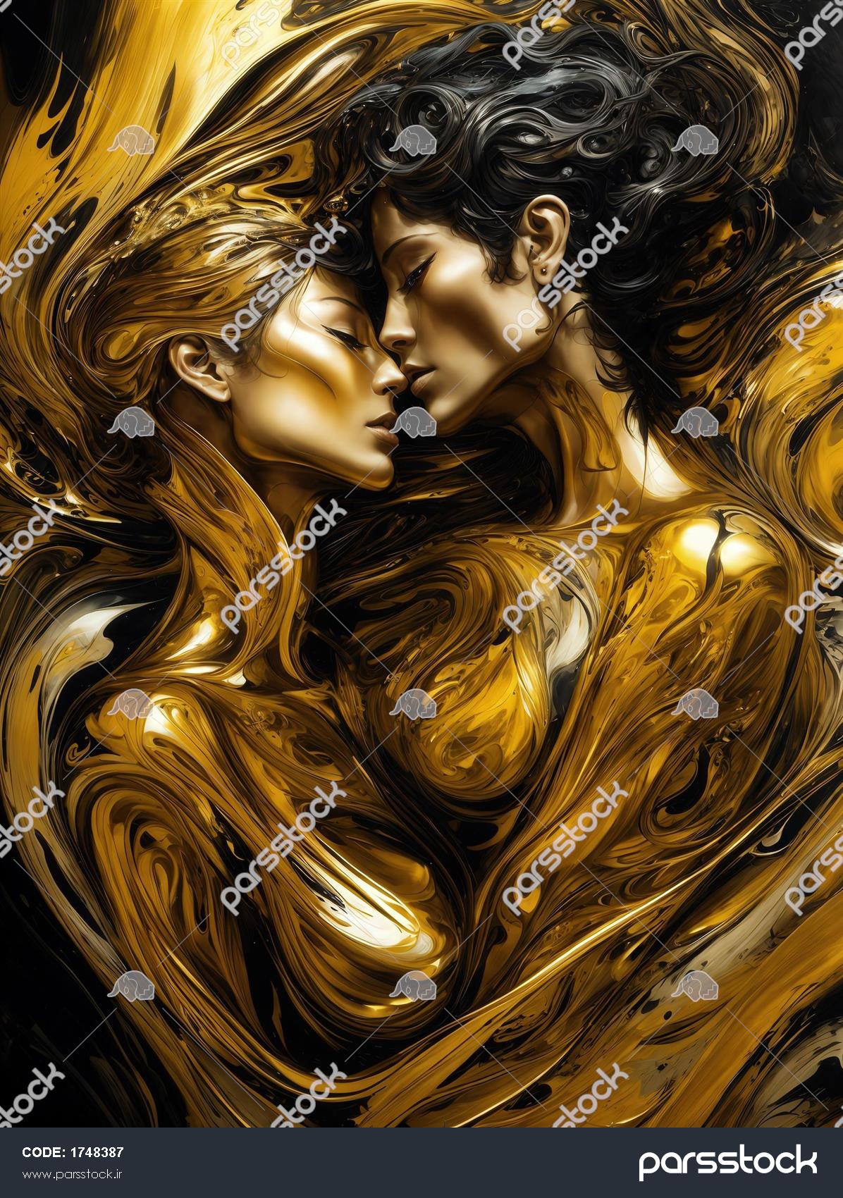تصویر آبستره زن و مرد عاشق در آغوش با تم طلایی تیره برای روتختی