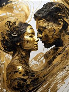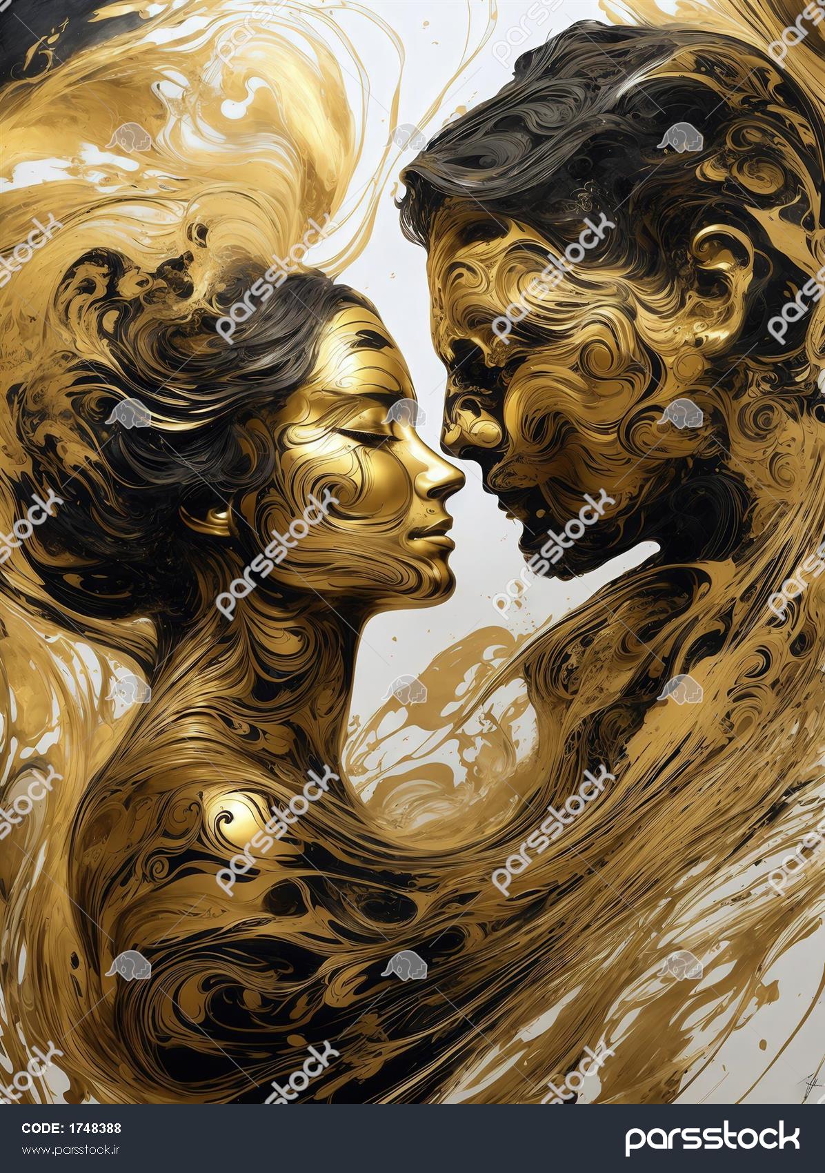 عکس عاشقانه زوج طلایی سیاه به سبک آبستره برای تابلو دکوراتیو سفید
