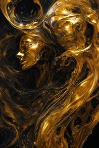 طرح کلوزآپ زن و مرد طلایی مایع در هم تنیده با پس‌زمینه مشکی