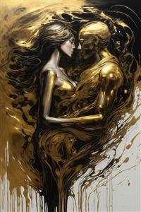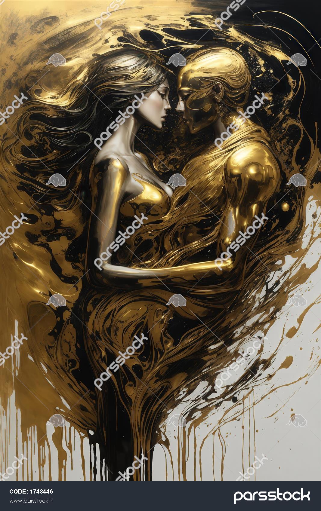 طرح دکوراتیو مجسمه مایع طلایی مشکی برای تابلو هنری دیواری