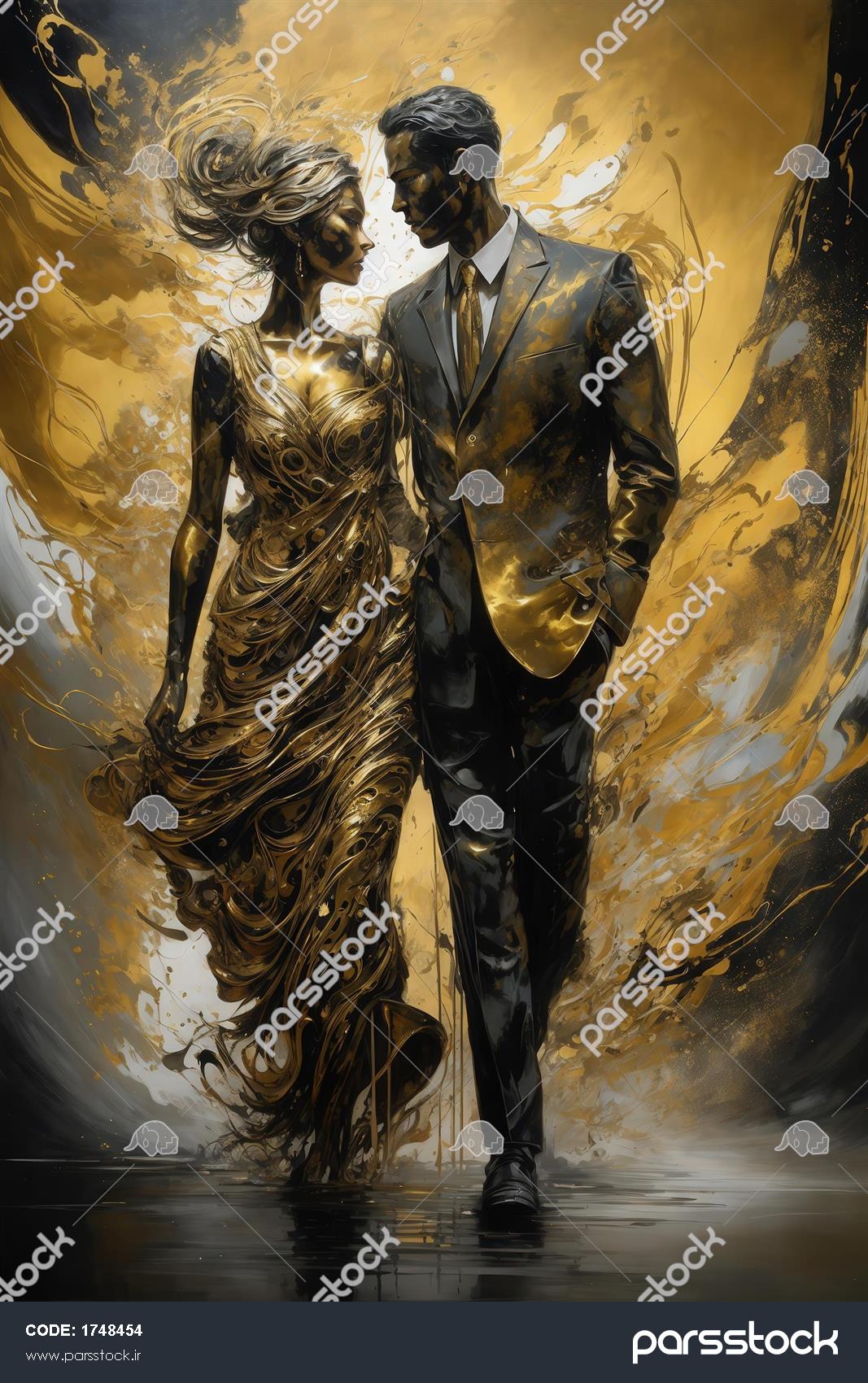 تصویر زوج زن طلایی و مرد کتوشلوارپوش لوکس در حال حرکت طرح زوج در آغوش با لباس رسمی طلایی و سیاه در جریانهای آبستره تیره تصویر زوج رسمی با لباس طلایی و سیاه در میان قطرات و جریانهای آبستره عکس زوج با لباس رسمی و چتر طلایی در حال راه رفتن زیر باران آبستره تصویر زوج عاشق در حال قدم زدن با لباسهای کلاسیک رمانتیک برای پوستر عکس زوج در آغوش با لباسهای رسمی و جریانهای طلایی دایرهای در پشت طرح زوج مجسمهای در آغوش با پاششهای طلایی دایرهای در زمینه سیاه و سفید طرح مجسمهای زوج مرد و زن با بدنهای طلایی و سیاه در زمینه لوکس تصویر قدم زدن زوج کلاسیک در باغ ایتالیایی برای تابلو دیواری رمانتیک عکس زوج مرد کتوشلوارپوش و زن طلایی در زمینه آبستره طلایی و سفید نمایش همه