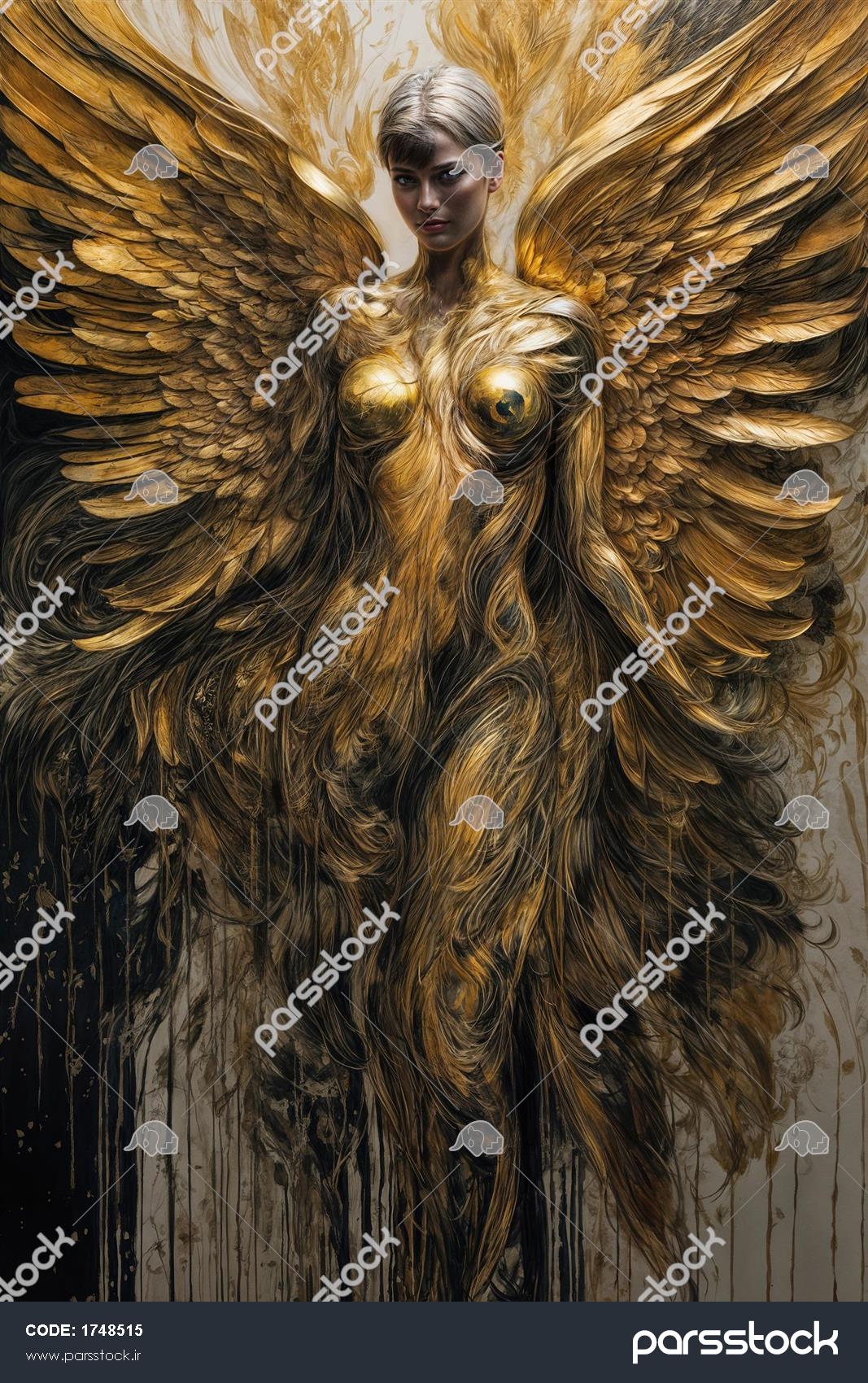 عکس فرشته الهه نورانی با بال طلایی بزرگ برای تابلو پذیرایی عکس فرشته زن بلوند با بال سفید بزرگ در زمینه طلایی دکوراتیو طرح زن طلایی در جریانهای آبستره طلایی و مشکی برای چاپ تابلوی بزرگ طرح فرشته زن لوکس با بالهای بزرگ طلایی برای چاپ روی روتختی تصویر پرتره فرشته با بالهای بزرگ مشکی و لباس طلایی برای چاپ تابلو طرح فرشته زن با بالهای بزرگ سفید و لباس بلند برای تابلو دکوراتیو فانتزی عکس فرشته طلایی زنانه با لباس و بالهای بزرگ برای پوستر دکوراتیو فانتزی تابلو فرشته بلوند طلایی: پرتره زن با تاج گل و بالهای بزرگ طلایی در لباس دکلته عکس زن بالدار طلایی با تاج بزرگ و بالهای مشکی برای چاپ پوستر زن فرشته با پوست آبی و لباس طلایی و بالهای بزرگ برای چاپ نمایش همه