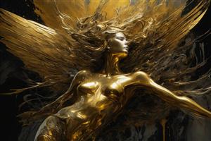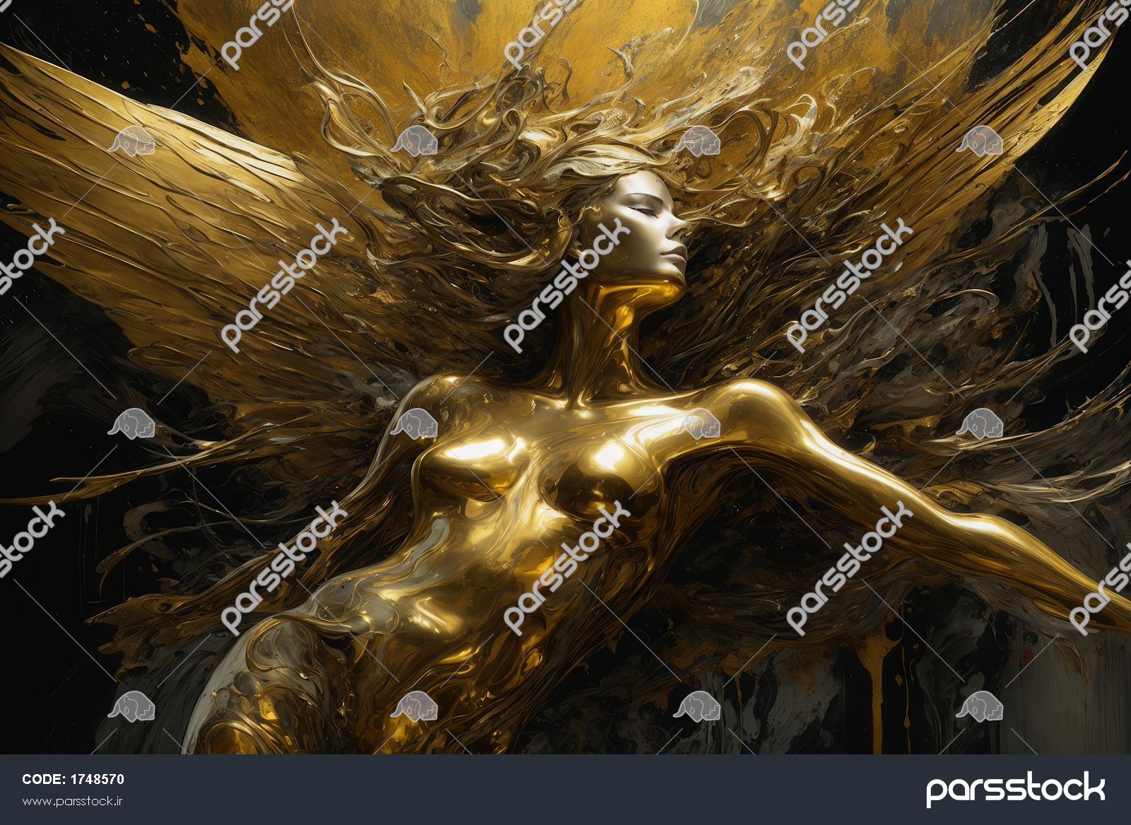پوستر فرشته بال‌های در حال پرواز با بافت طلای مایع و زمینه تیره