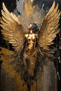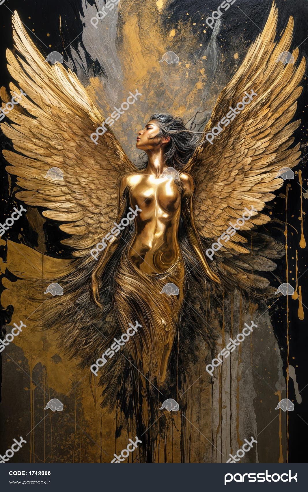 عکس الهه با بال‌های پرمانند طلایی برای تابلو پذیرایی لوکس