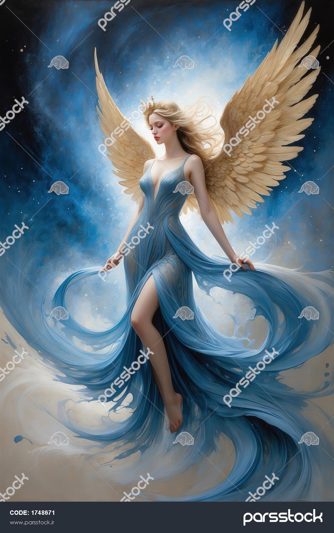 عکس فرشته زن با بالهای پرجزئیات طلایی و لباس آبی برای چاپ عریض تصویر فرشته با لباس آبی روشن برای چاپ پرده و روتختی تصویر ملکه اثیری با لباس آبی و طلایی برای تابلو اتاق خواب تصویر فرشته زن با لباس آبی طلایی، بال و تاج بزرگ برای چاپ دکور عکس فرشته الهه نورانی با بال طلایی برای تابلو دکوراتیو لاکچری طرح فرشته زن با لباس طلایی و بالهای بزرگ برای چاپ تابلو پذیرایی شیک عکس فرشته ملکه با بال طلایی و لباس آبی سلطنتی برای روتختی عکس الهه با بالهای آبی و طلایی برای تابلو دکوراتیو نشیمن عکس ملکه با بالهای طلایی پردار برای چاپ روتختی اشرافی تصویر فرشته زن با بال طلایی و لباس دنبالهدار سفید برای چاپ نمایش همه