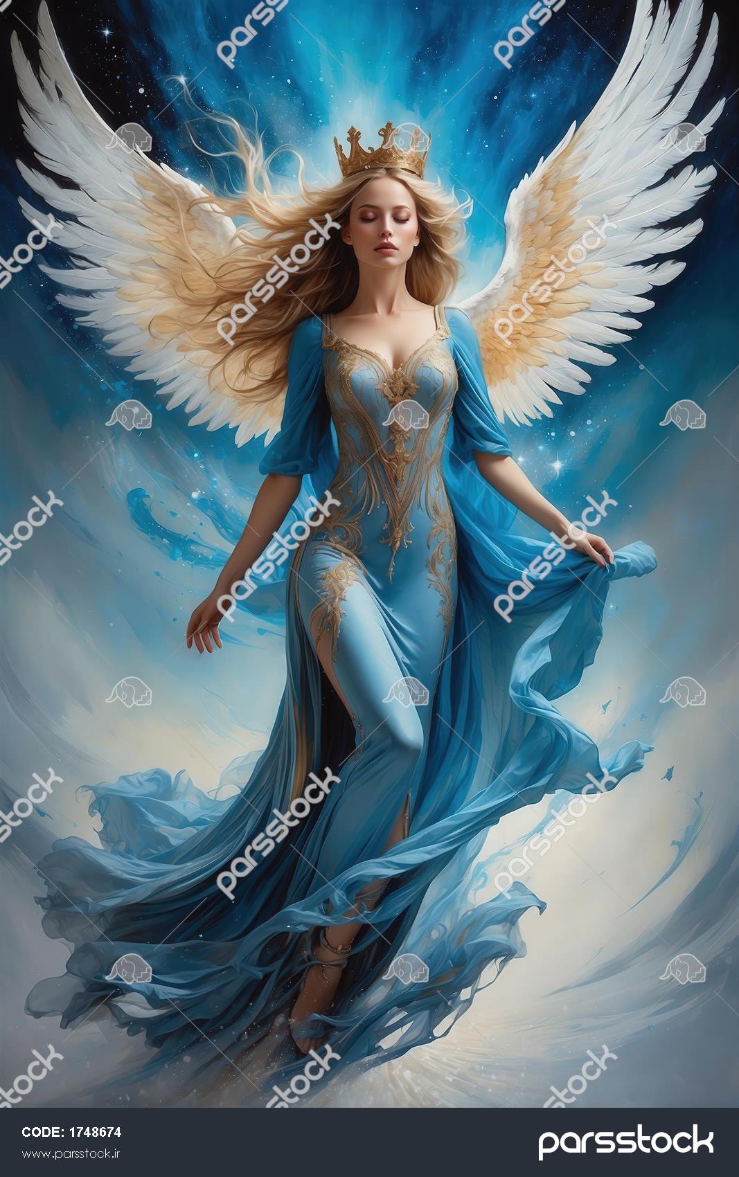 طرح ملکه آسمانی با لباس سفید و تاج طلایی برای تابلو دکوراتیو تصویر فرشته با لباس طلایی و تاج آبی برای پوستر دکوراتیو پذیرایی پرتره زن فرشته با موی تیره، تاج طلایی و لباس آبی سلطنتی برای تابلو طرح فرشته بال طلایی با لباس آبی و تاج سلطنتی برای تابلو تصویر فرشته زن با لباس آبی طلایی، بال و تاج بزرگ برای چاپ دکور عکس فرشته زن با لباس طلایی و آبی، بال و تاج طلایی مناسب تابلو طرح زن سلطنتی با تاج طلایی و لباس آبی دکوراتیو برای تابلو دیواری تصویر ملکه اثیری با لباس آبی و طلایی برای تابلو اتاق خواب فرشته با تاج آبی و طلایی و لباس آبی روشن در فضای معماری اسلامی تصویر ملکه دریا با تاج و لباس آبی در قاب آینه طلایی برای چاپ روتختی مشاهده همه