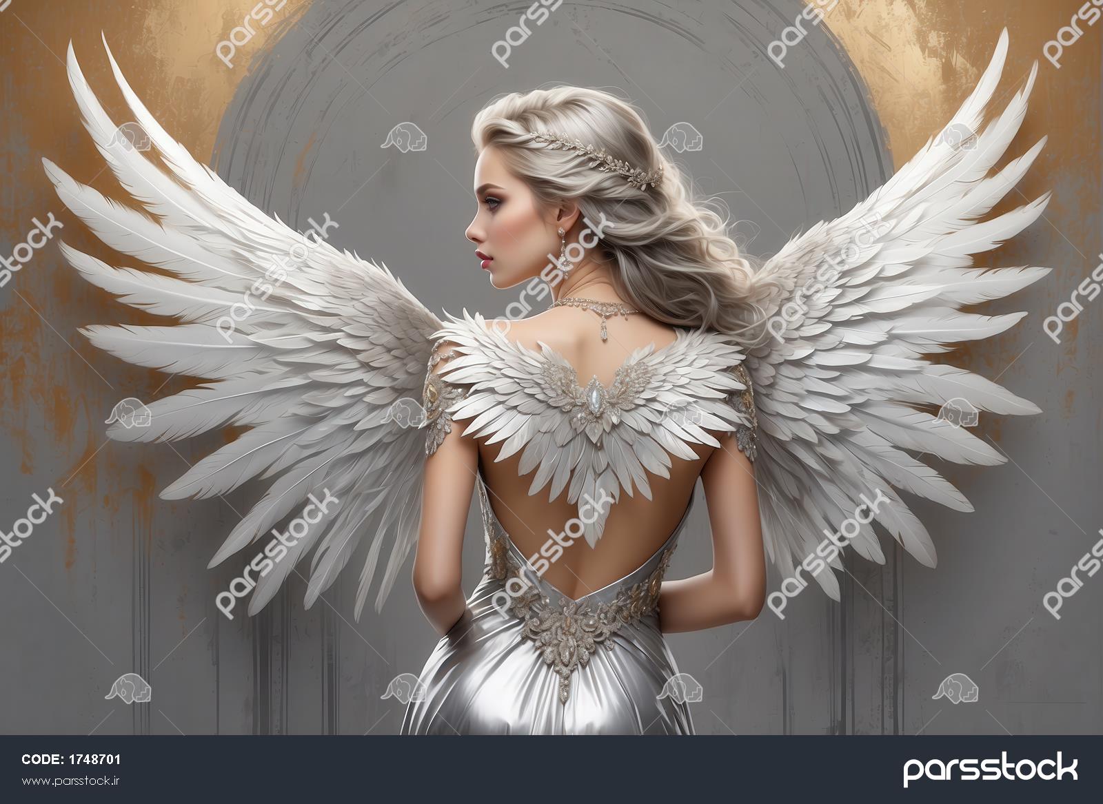 طرح فرشته زن با موی نقرهای و بال خاکستری در لباس فیروزهای/نقرهای طرح فرشته زن با بال نقرهای و پارچه فیروزهای در پسزمینه نقاشی آبرنگی طرح فرشته زن بالدار طلایی فانتزی برای پوستر دیواری لاکچری و شیک طرح فرشته زن لوکس با بدن و لباس طلایی برای دکوراسیون کلاسیک تصویر فرشته زن از پشت با بالهای پرپشت سفید و لباس پشتباز نقرهای طلایی طرح فرشته زن با تاج، هالهی نور، لباس آبی و بالهای طلایی و آبی در زمینه ستارهای طرح پرتره فرشته زن باکیفیت بالا برای تابلو پذیرایی طرح فرشته زن فانتزی با بالهای آبی سفید و لباس فاخر برای پوستر باکیفیت طرح فرشته زن بلوند با موی بلند و بال سفید برای چاپ روی کوسن طرح زن فرشته با لباس طلایی طرحدار، شال گشاد و بالهای ساده برای چاپ نمایش همه