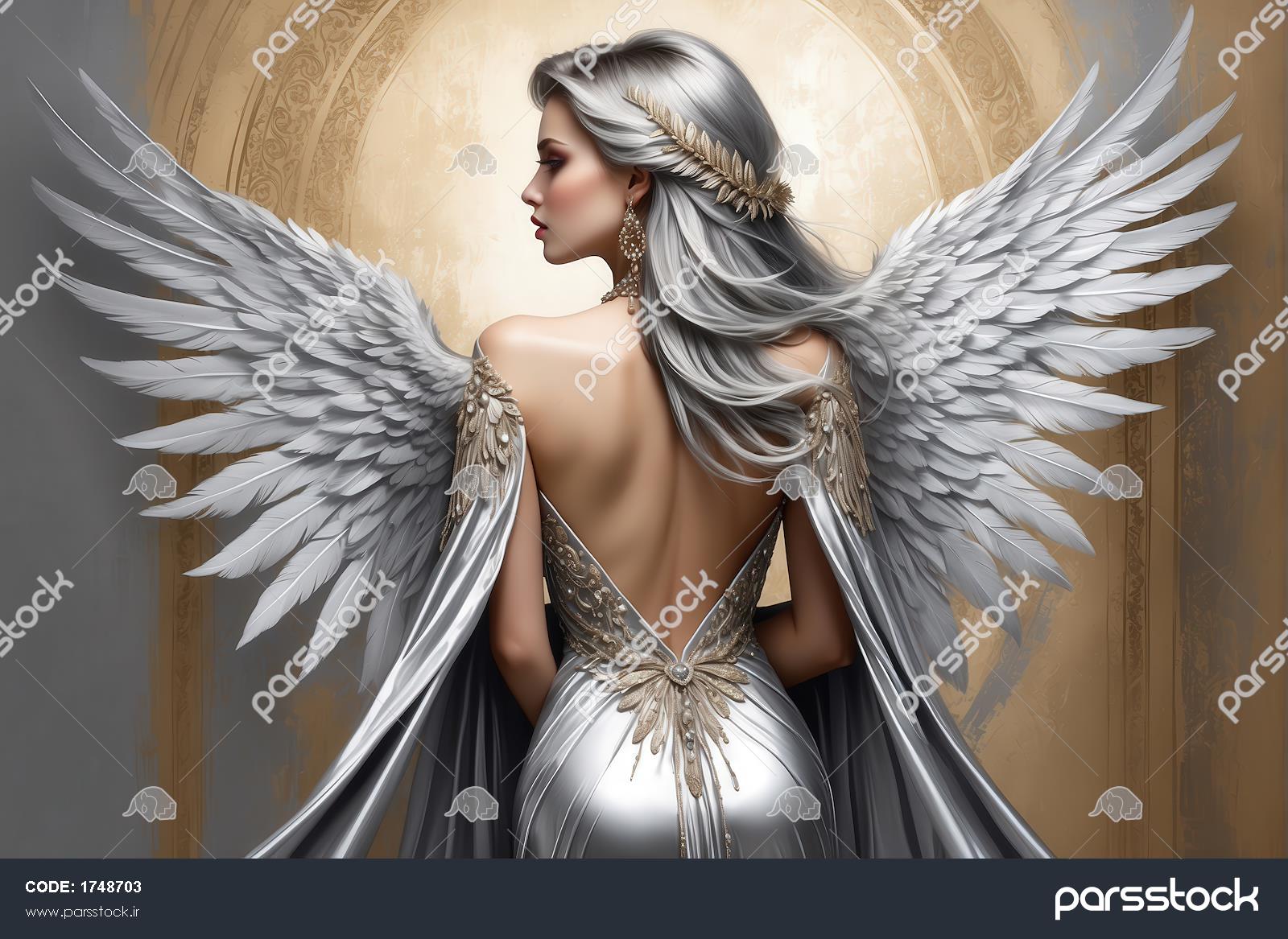 عکس فرشته زن از پشت با بالهای نقرهای بزرگ و لباس پشتباز متالیک تصویر فرشته زن با لباس نقرهای اسلشدار، بال سفید و تزئینات طلایی کریستالی روی سینه عکس فرشته زن از پشت با بالهای نقرهای بزرگ و لباس متالیک دنبالهدار طرح پرتره فرشته با بالهای نقرهای بزرگ و لباس نقرهای با گلدوزی طلایی در قاب طلایی تصویر فرشته زن از پشت با موی نقرهای و لباس پشتباز نقرهای طرح خورشید عکس فرشته طلایی زنانه با لباس و بالهای بزرگ برای پوستر دکوراتیو فانتزی عکس فرشته زن با بالهای سفید بزرگ و لباس نقرهای براق برای پوستر تصویر فرشته زن با موی بلوند و لباس نقرهای و بال بزرگ سفید برای چاپ روی بوم عکس فرشته زن با لباس نقرهای فیروزهای و بالهای نقرهای دکوراتیو عکس ملکه فرشته با لباس نقرهای برای پوستر دکوراتیو طلایی نمایش همه
