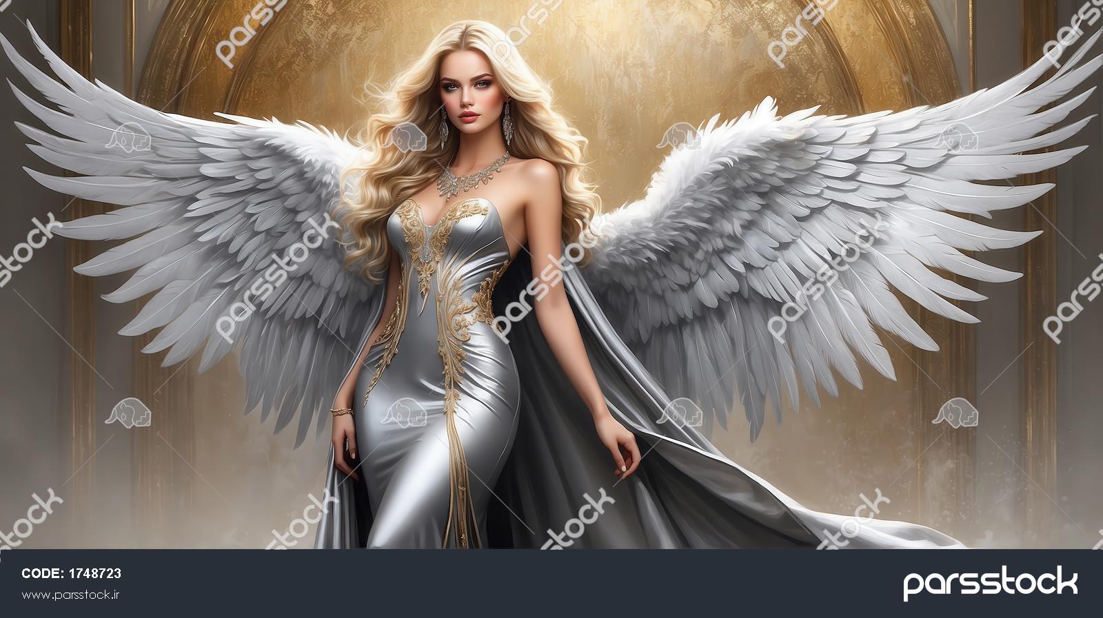 تابلو فرشته آرامش: زن بلوند با بال طلایی و تاج برگهای زرین در لباس سفید عکس فرشته زن با لباس پر زرق و برق طلایی برای تابلو لوکس عکس الهه فرشته بلوند با لباس مجلسی برای تابلو دکوراتیو عریض تصویر فرشته زن با بال سفید بزرگ و لباس نقرهای در حالت رقص دکوراتیو طرح فرشته زن با لباس طلایی و بالهای بزرگ برای چاپ تابلو پذیرایی شیک عکس فرشته زن با لباس طلایی و آبی، بال و تاج طلایی مناسب تابلو تصویر فرشته زن با لباس نقرهای اسلشدار، بال سفید و تزئینات طلایی کریستالی روی سینه عکس فرشته زن با موی نقرهای، لباس نقرهای طلایی و بالهای پرپشت سفید طرح فرشته زن با لباس مشکی طلایی برای تابلو مدرن تصویر فرشته زن با موی بلوند و بال سفید برای تابلو دکوراتیو مجلل نمایش همه