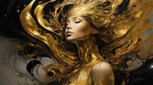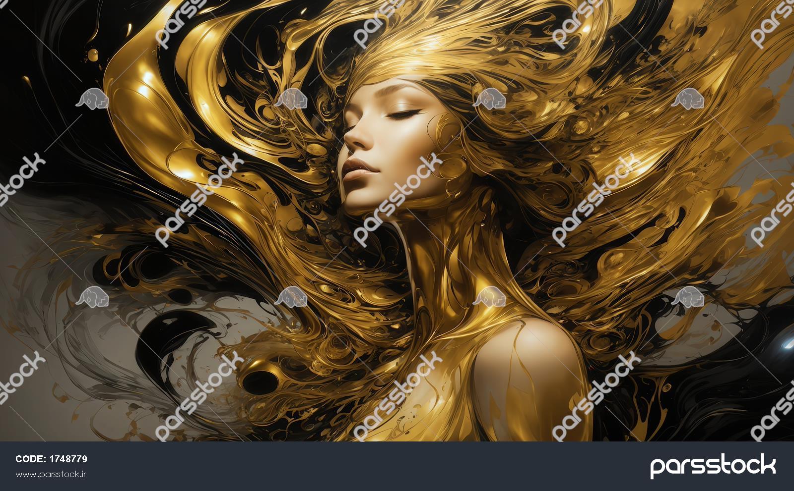 عکس زن با موهای طلایی روان و بدن طلایی برای تابلو دکوراتیو لوکس