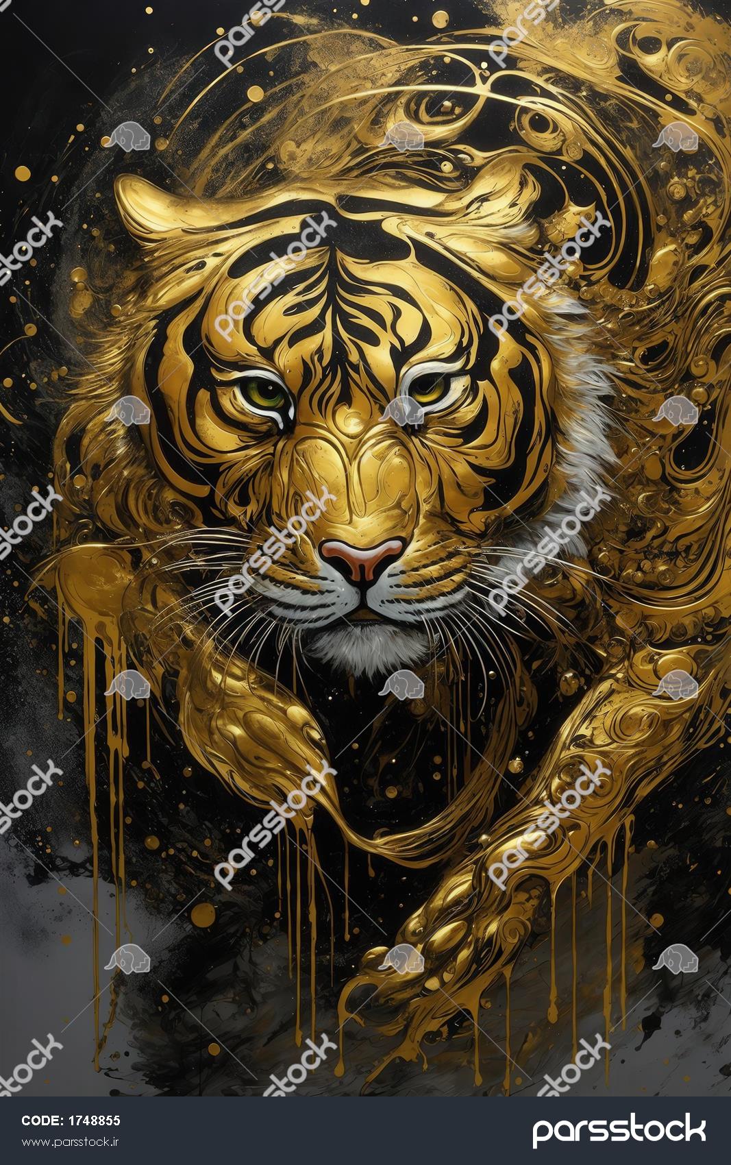 تصویر ببر طلایی با چشمهای زرد نافذ برای چاپ عریض دکوراتیو طرح نزدیک ببر طلایی از زاویهی نیمرخ با زمینه مشکی برای چاپ تیشرت تصویر ببر طلایی قوی در میان گرداب سیاه و طلایی برای چاپ روی کوسن طرح نیمرخ ببر طلایی با نقاشیهای آبستره برای تابلو دکور نشیمن طرح نزدیک دو ببر طلایی باشکوه برای چاپ روتختی باکیفیت تصویر دو ببر خشمگین طلایی در حال جنگ برای تابلو دکوراتیو نشیمن طرح ببر طلایی نشسته کامل با پسزمینه آبستره برای پوستر اتاق نشیمن عکس ببر طلایی با بدن کامل در حال کمین برای پوستر دیواری باکیفیت طرح ببر نر و ماده طلایی رو به هم برای چاپ تابلو دکوراتیو عاشقانه تصویر گل رز سفید طلایی با بافت مایع در پسزمینه تیره برای پوستر نمایش همه