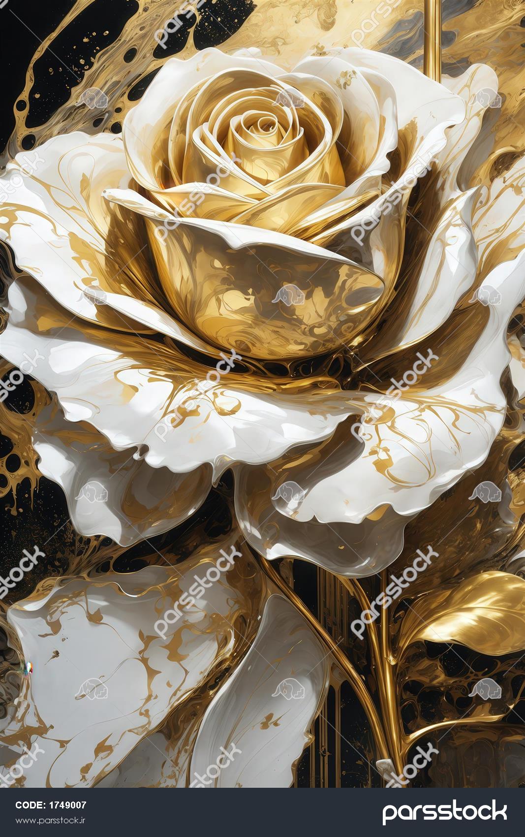 تصویر گل رز سفید طلایی با جزئیات زیاد برای چاپ روتختی تصویر گل رز سفید با رگههای طلایی و موجهای انتزاعی لوکس تصویر گل رز سفید و طلایی با قطرات سیاه برای تابلو دکوراتیو عکس گل رز طلایی و سفید مایع دکوراتیو برای چاپ پوستر عریض طرح پنج گل رز طلایی روی شاخه با پس زمینه سیاه و قطرهای طرح دکوراتیو سه شاخه گل رز طلایی و سفید روی پس زمینه مشکی طرح پترن تکرار گل رز طلایی با برگهای خاکستری لوکس برای چاپ طرح تک شاخه گل رز طلایی با برگ و پس زمینه انتزاعی سیاه عکس گل رز طلایی براق سهبعدی برای چاپ روی پرده و کوسن گل رز طلایی و پرهای آبی روی پس زمینه مشکی با افکت پاشش، طرح گرافیکی تیره و دراماتیک نمایش همه
