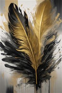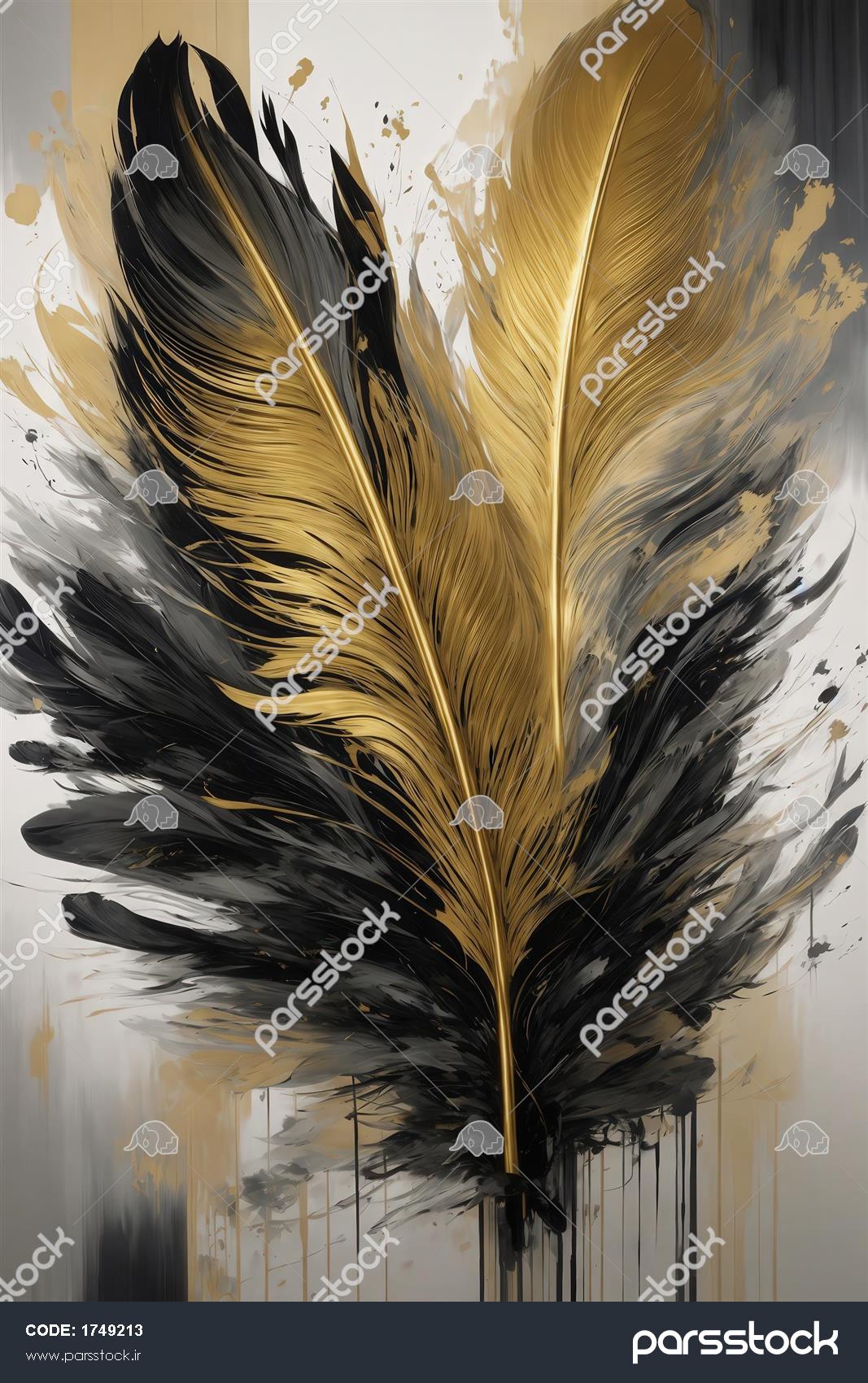 عکس دو پر طلایی باکیفیت بالا و پاشش جوهر مشکی روی زمینه روشن