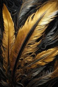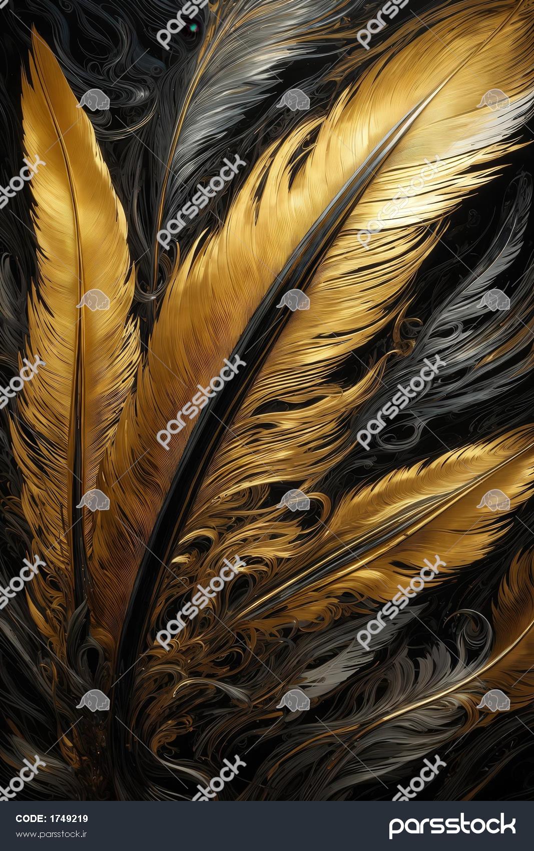 عکس پرهای طلایی و خاکستری درخشان با پس زمینه تیره برای دکور